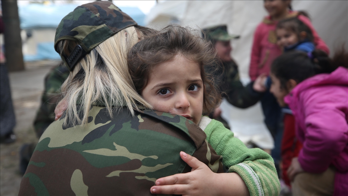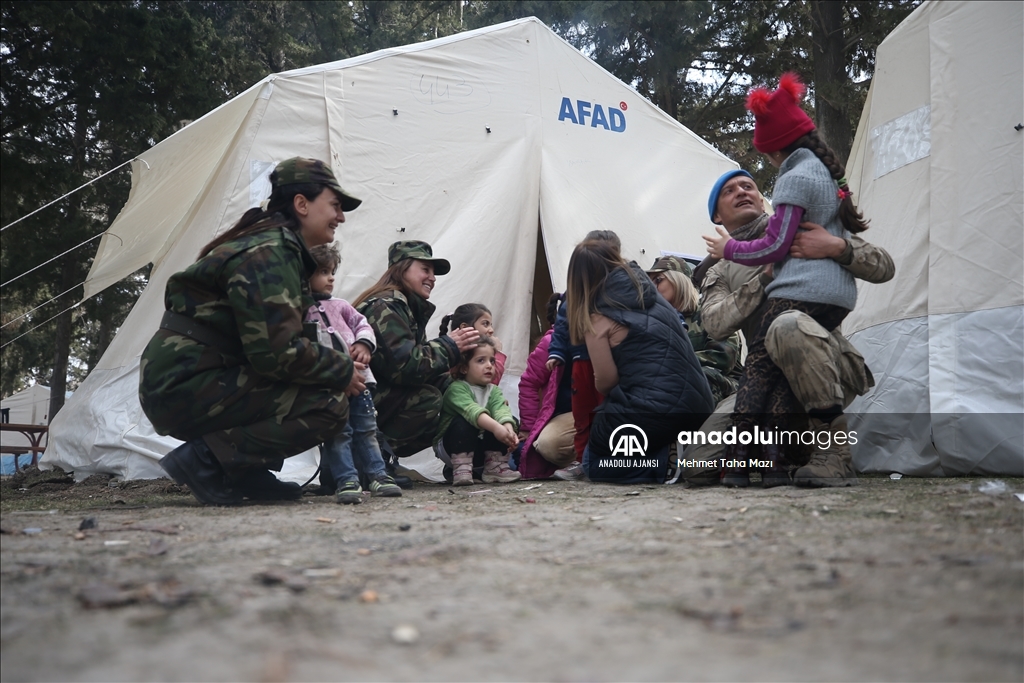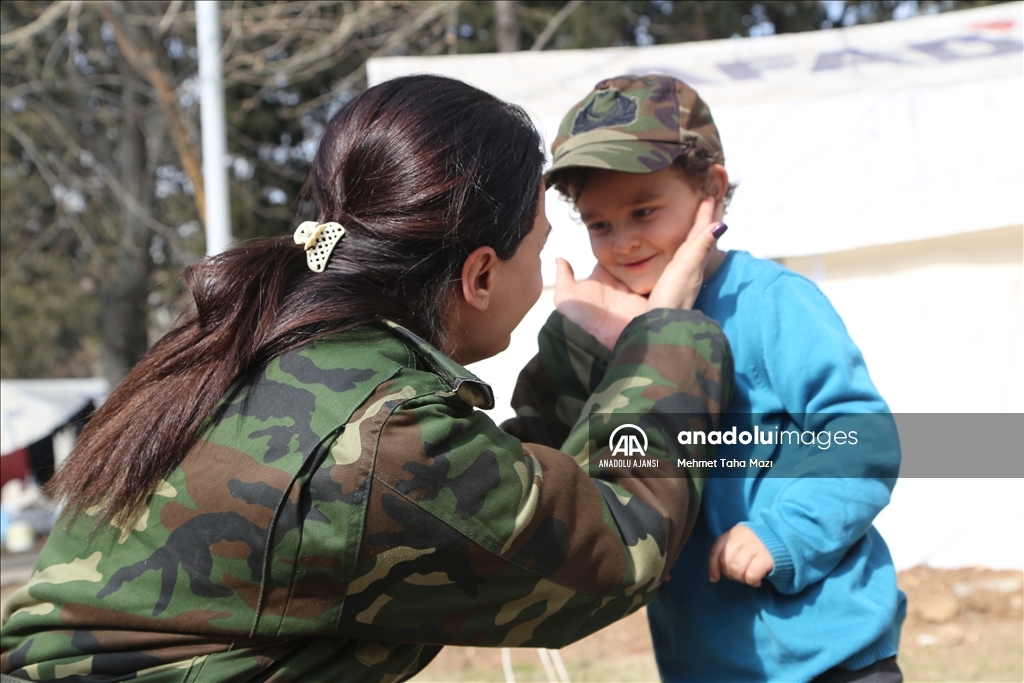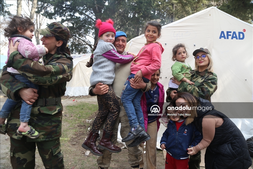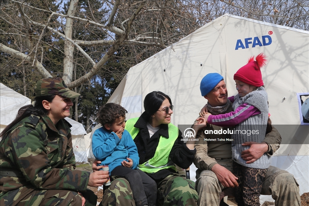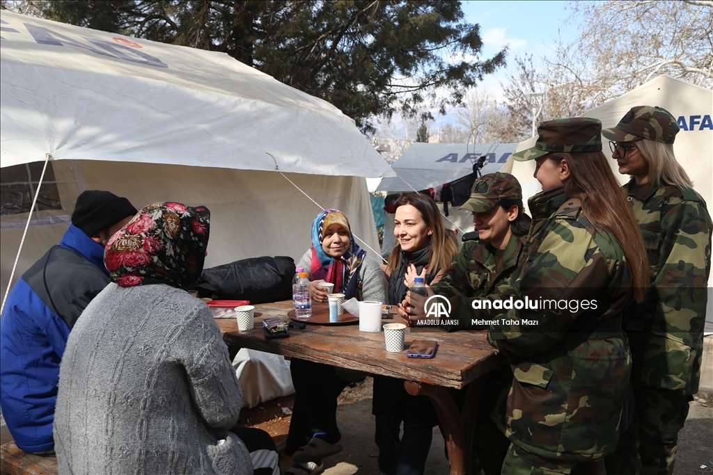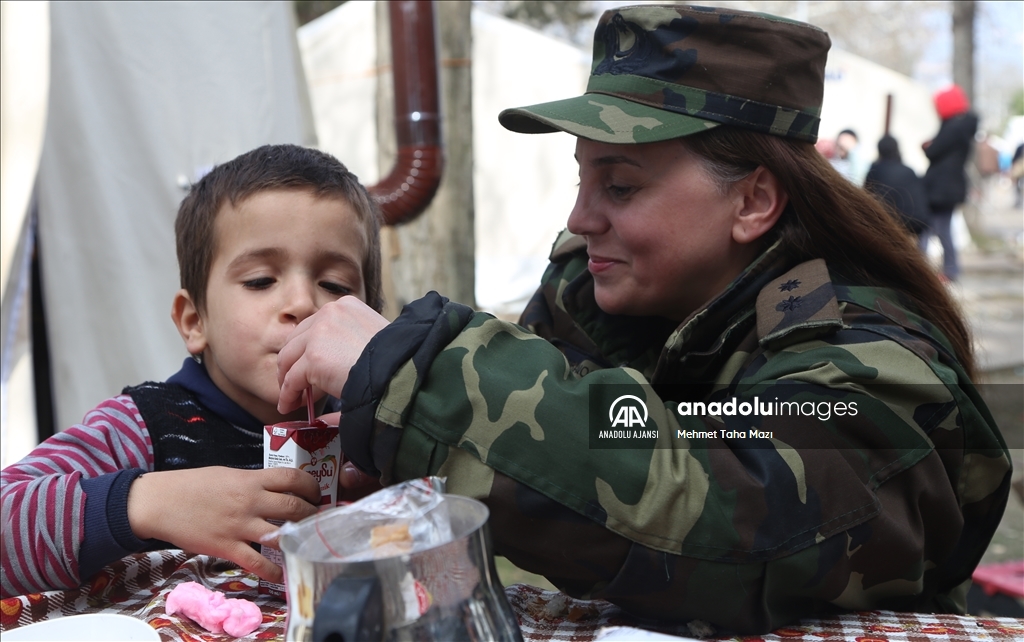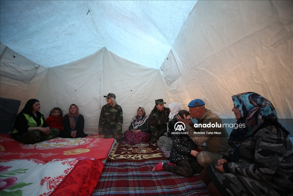 Kahramanmaraş'ta depremzedelere Azerbaycanlı kadın askerlerden psikolojik destek