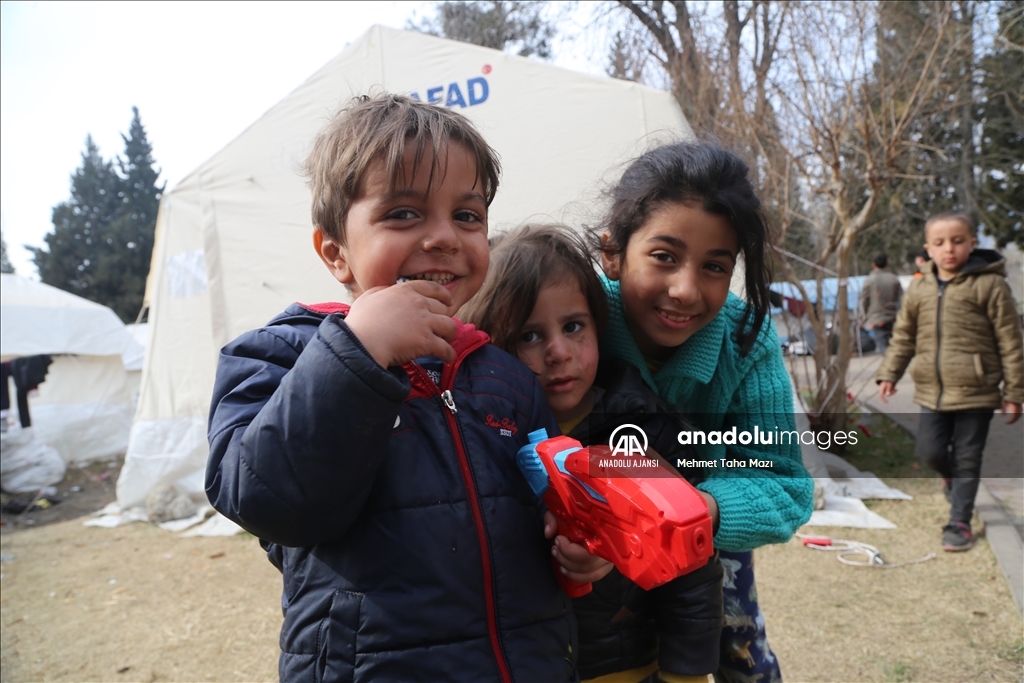 Azerbaycanlı kadın psikologlar, "asrın felaketi" olarak nitelenen deprem Kahramanmaraş merkezli depremlerin ardından çadır kentlere yerleştirilen hemcinslerini psikolojik destek veriyor. ( Mehmet Taha Mazı - Anadolu Ajansı )Mehmet Taha Mazı