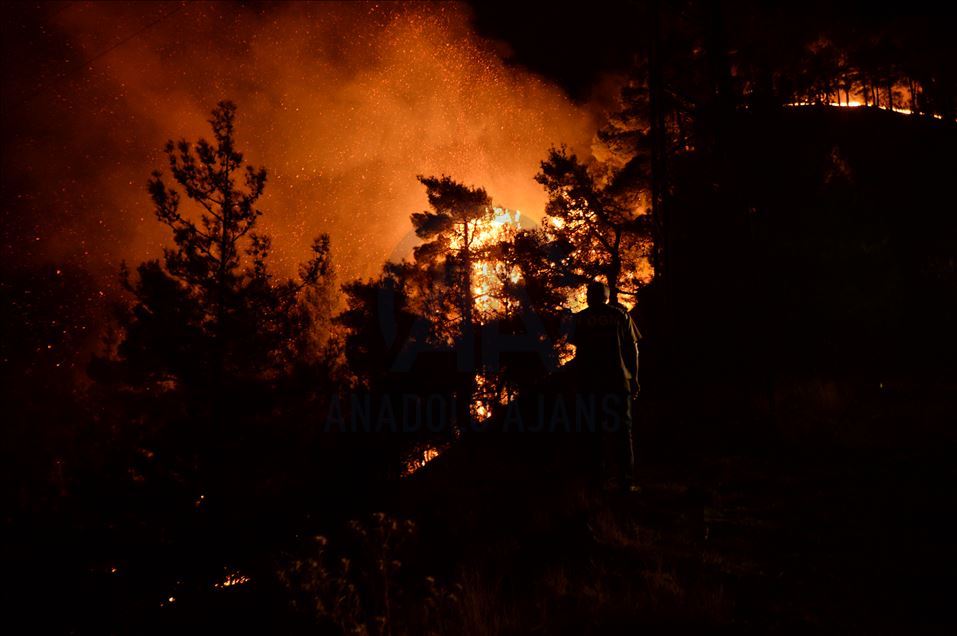 Kahramanmaraş'ın Andırın ilçesinde çıkan orman yangınlarına müdahaleler sürüyor. Konya, Mersin, Malatya, Adıyaman ve Adana'dan takviye gönderilen ekiplerinde destek verdiği yangın söndürme çalışmalarına vatandaşlar da yardım ediyor. Havadan ve karadan müdahalenin devam ettiği yangının kısmi olarak kontrol altına alındığı bildirildi. ( İzzet Mazı - Anadolu Ajansı )İzzet Mazı