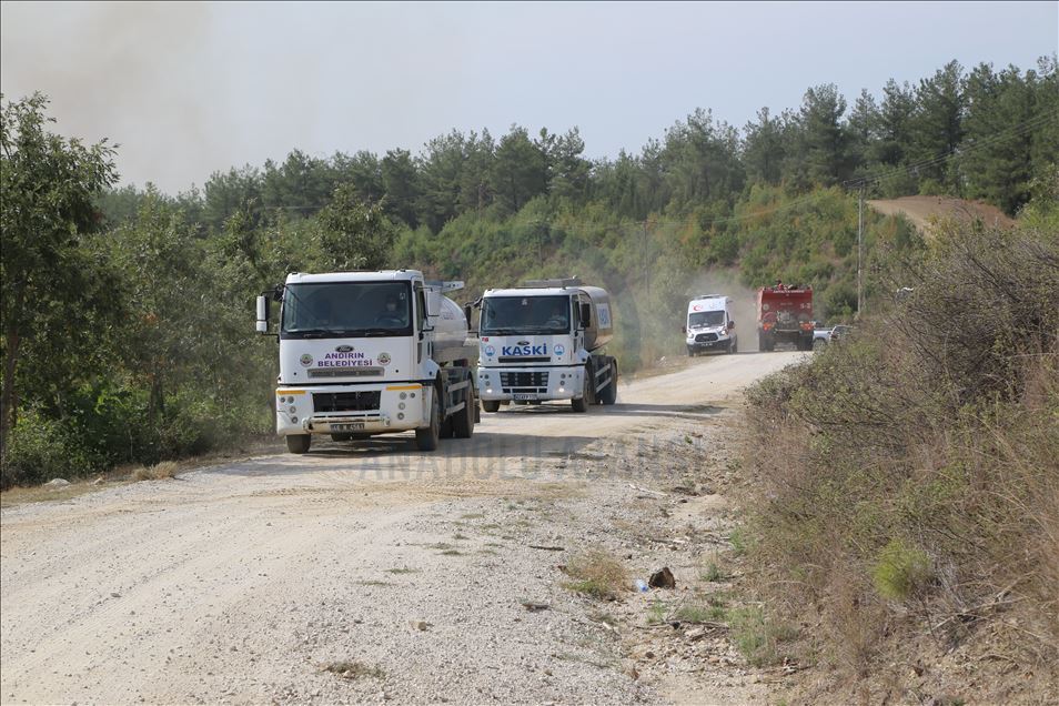 Kahramanmaraş'ın Andırın ilçesinde çıkan orman yangınına müdahale ediliyor. 35 hektarlık alanda çıkan yangının söndürülmesi için Konya, Mersin, Malatya, Adıyaman ve Adana'dan gelen arazözler takviye olarak destek veriyor. ( Tunahan Akgün - Anadolu Ajansı )Tunahan Akgün