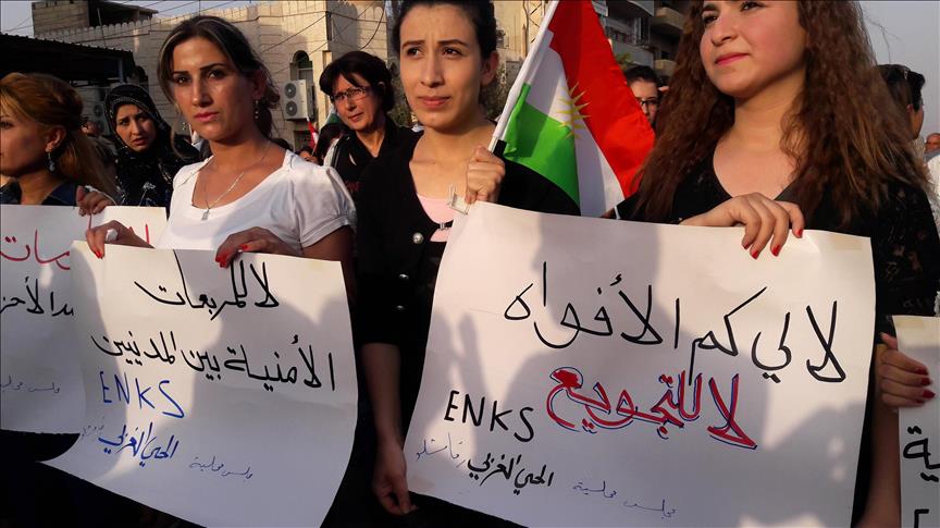 Kamışlı'da Kürtler PYD'yi protesto etti