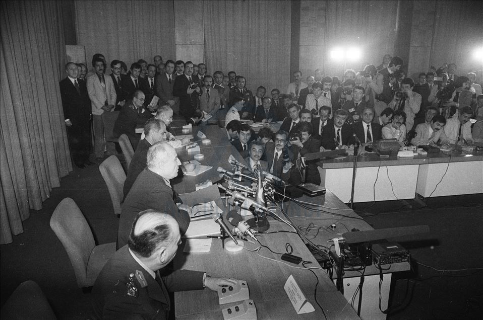 Türkiye demokrasi tarihinde kara bir leke olarak geçen ve acısı yıllarca hafızalardan silinmeyecek uygulamaları beraberinde getiren 12 Eylül 1980 darbesinin üzerinden 40 yıl geçti. Milli Güvenlik Konseyi (MGK) Başkanı ve Genelkurmay Başkanı Orgeneral Kenan Evren, basına ilk açıklamasını 12 Eylül 1980'de TBMM'de yaptı. (Arşiv) ( AA Arşivi - Anadolu Ajansı )AA Arşivi