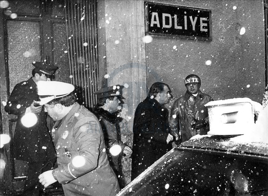 Türkiye demokrasi tarihinde kara bir leke olarak geçen ve acısı yıllarca hafızalardan silinmeyecek uygulamaları beraberinde getiren 12 Eylül 1980 darbesinin üzerinden 40 yıl geçti. Milliyetçi Hareket Partisi (MHP) Genel Başkanı Alparslan Türkeş (ortada), 11 Aralık 1980'de Ankara Adliyesi'nde ifade verdi. (Arşiv)