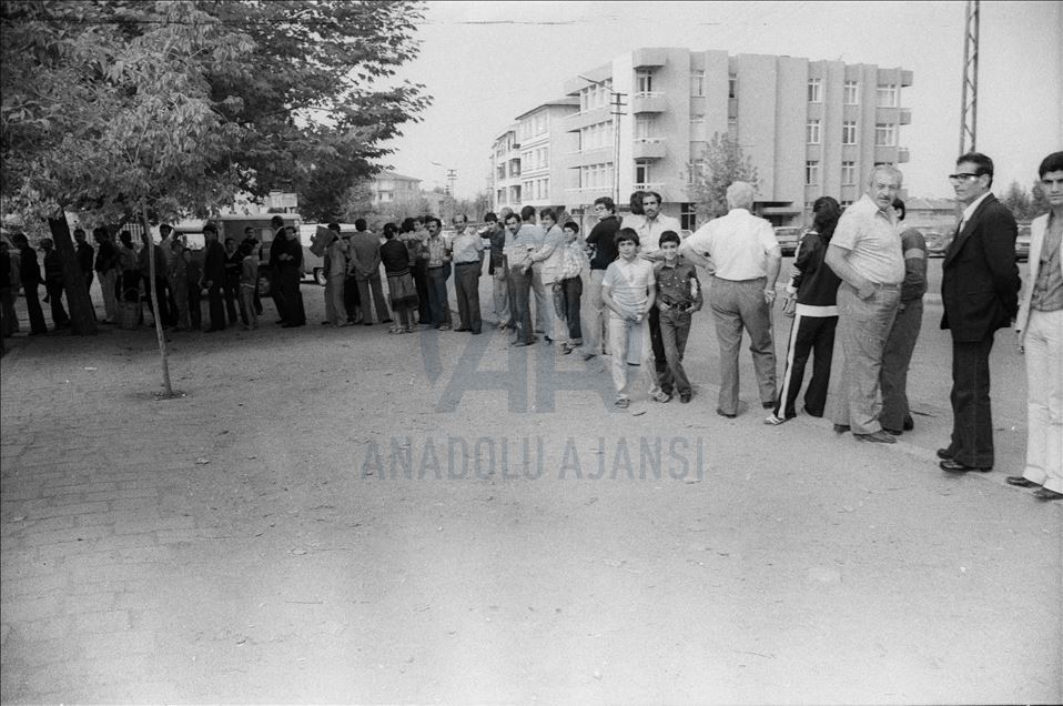 Türkiye demokrasi tarihinde kara bir leke olarak geçen ve acısı yıllarca hafızalardan silinmeyecek uygulamaları beraberinde getiren 12 Eylül 1980 darbesinin üzerinden 40 yıl geçti. 12 Eylül 1980 sabahı temel ihtiyaçlarını karşılamak isteyen vatandaşlar fırınların önünde uzun kuyruklar oluşturdu. (Arşiv) ( AA Arşivi - Anadolu Ajansı )AA Arşivi