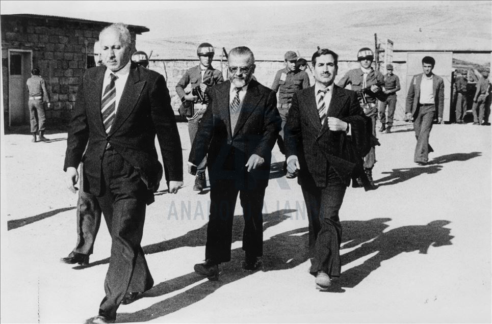 Türkiye demokrasi tarihinde kara bir leke olarak geçen ve acısı yıllarca hafızalardan silinmeyecek uygulamaları beraberinde getiren 12 Eylül 1980 darbesinin üzerinden 40 yıl geçti. Milliyetçi Selamet Partisi (MSP) Genel Başkanı Necmettin Erbakan (sol önde), Tahir Büyükkorukçu (sakallı) ve Şener Battal (sağda) 15 Ekim 1980'de tutuklandı. (Arşiv)