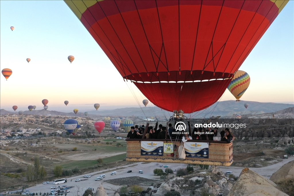 Dünyada sıcak hava balon turunun en yoğun yapıldığı turizm merkezi Kapadokya'da, bu yılın ocak-ekim döneminde 556 bin 306 yerli ve yabancı turist, bölgeyi gökyüzünden izledi.