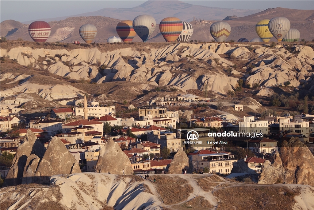 Dünyada sıcak hava balon turunun en yoğun yapıldığı turizm merkezi Kapadokya'da, bu yılın ocak-ekim döneminde 556 bin 306 yerli ve yabancı turist, bölgeyi gökyüzünden izledi. UNESCO Dünya Mirasları Listesi'nde yer alan Kapadokya'daki sıcak hava balonları konuklara, manzaranın görkemini kuş bakışı keşfetme imkanı sunuyor. ( Behçet Alkan - Anadolu Ajansı )Behçet Alkan