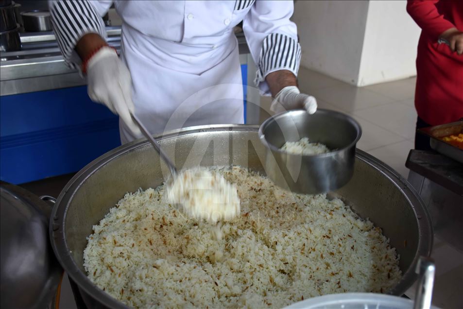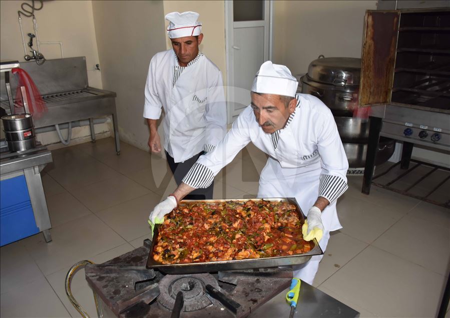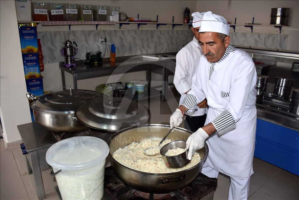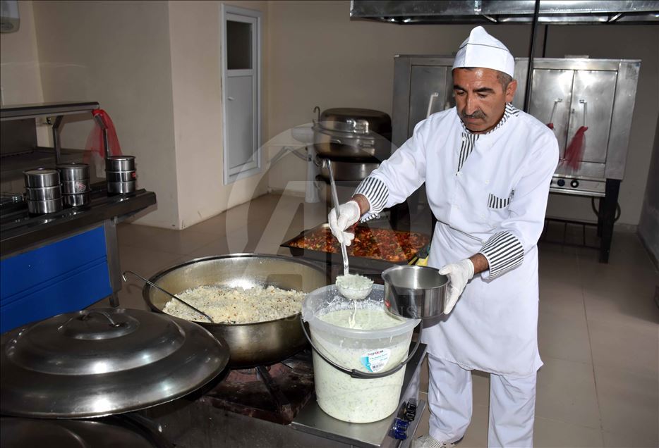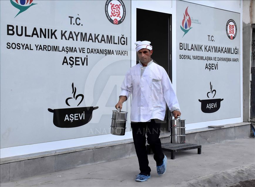 Muş'un Bulanık ilçesinde Sosyal Yardımlaşma ve Dayanışma Vakfı (SYDV) tarafından açılan aşevinde pişirilen sıcak yemekler, ihtiyaç sahibi vatandaşların evlerine götürülüyor. Gıda seçiminde tazelik, kaliteye önem verilen ve hijyen kurallarının tümüne dikkat edilen aşevinde, diyetisyenler kontrolünde dev kazanlarda her gün 3 çeşit yemek pişiriliyor. Sefer taslarına konulan yemekler, önceden belirlenen 111 ihtiyaç sahibine ulaştırılıyor.