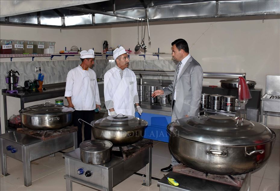Muş'un Bulanık ilçesinde Sosyal Yardımlaşma ve Dayanışma Vakfı (SYDV) tarafından açılan aşevinde pişirilen sıcak yemekler, ihtiyaç sahibi vatandaşların evlerine götürülüyor. Gıda seçiminde tazelik, kaliteye önem verilen ve hijyen kurallarının tümüne dikkat edilen aşevinde, diyetisyenler kontrolünde dev kazanlarda her gün 3 çeşit yemek pişiriliyor. Sefer taslarına konulan yemekler, önceden belirlenen 111 ihtiyaç sahibine ulaştırılıyor. Bulanık Kaymakamı Hacı Arslan Uzan (sağda), aşevini ziyaret etti.
