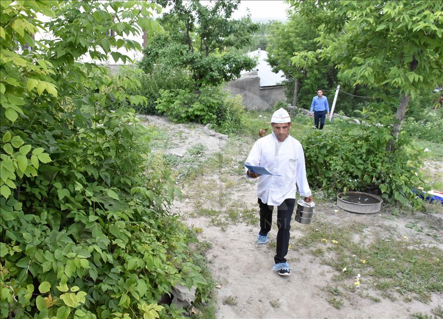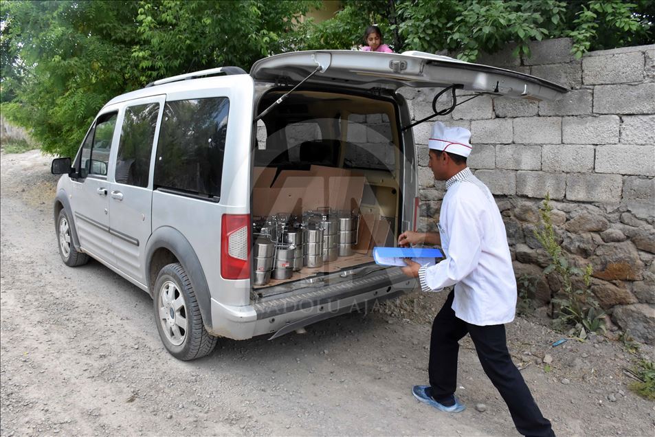 Muş'un Bulanık ilçesinde Sosyal Yardımlaşma ve Dayanışma Vakfı (SYDV) tarafından açılan aşevinde pişirilen sıcak yemekler, ihtiyaç sahibi vatandaşların evlerine götürülüyor.