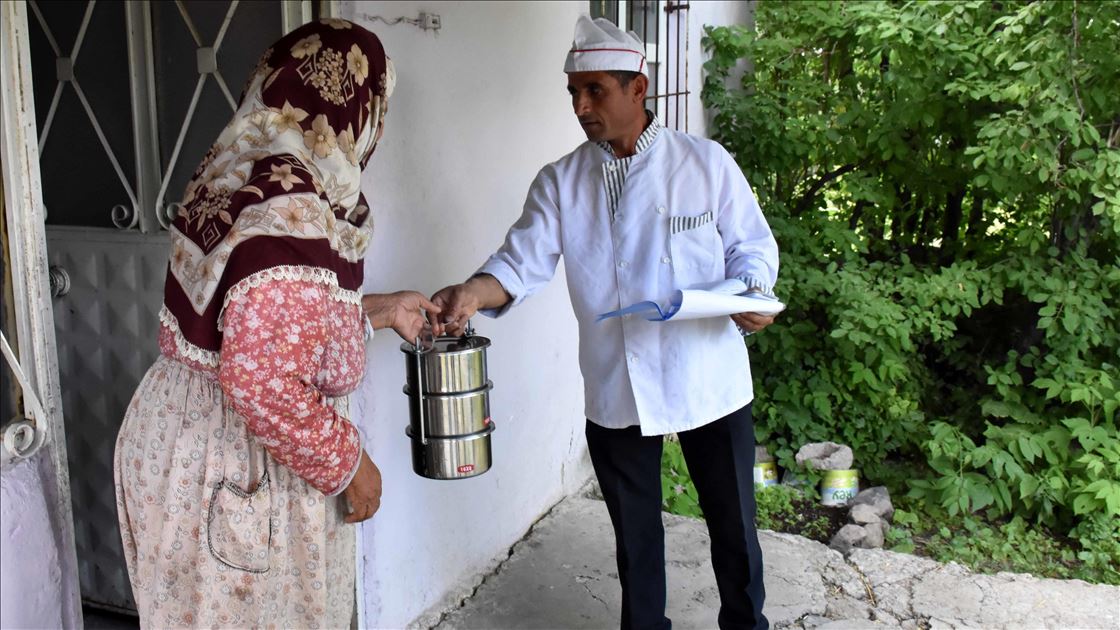 Muş'un Bulanık ilçesinde Sosyal Yardımlaşma ve Dayanışma Vakfı tarafından açılan aşevinde pişirilen sıcak yemekler, ihtiyaç sahibi vatandaşların evlerine ulaştırılıyor.