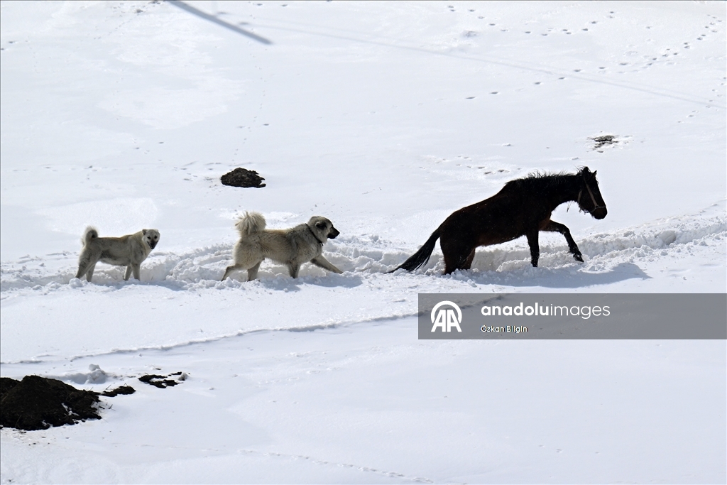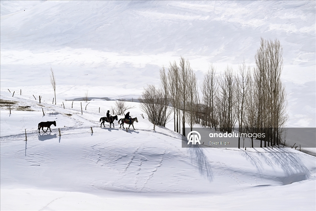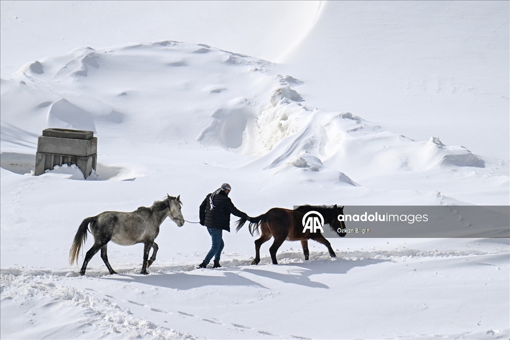 İlçeye 98 kilometre mesafedeki İran sınırında bulunan ve etrafı yüksek dağlarla çevrili mahallede son yılların en çetin kışı yaşanıyor. Mahallede yaşayanlar, çoğu zaman ulaşım için atları kullanıyor. (Özkan Bilgin - Anadolu Ajansı)Özkan Bilgin