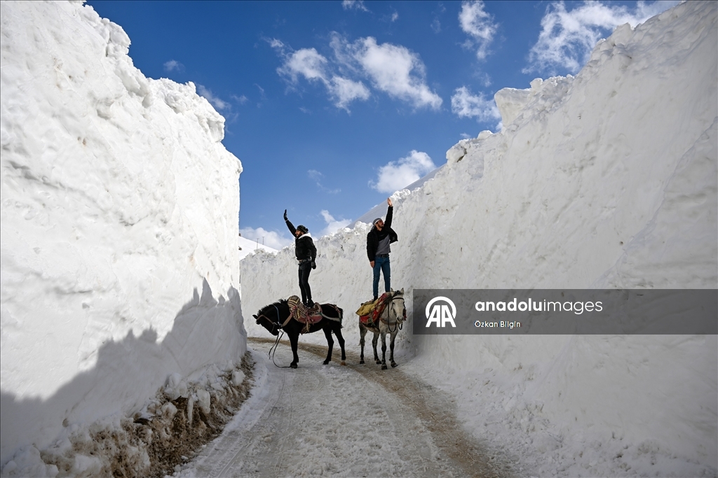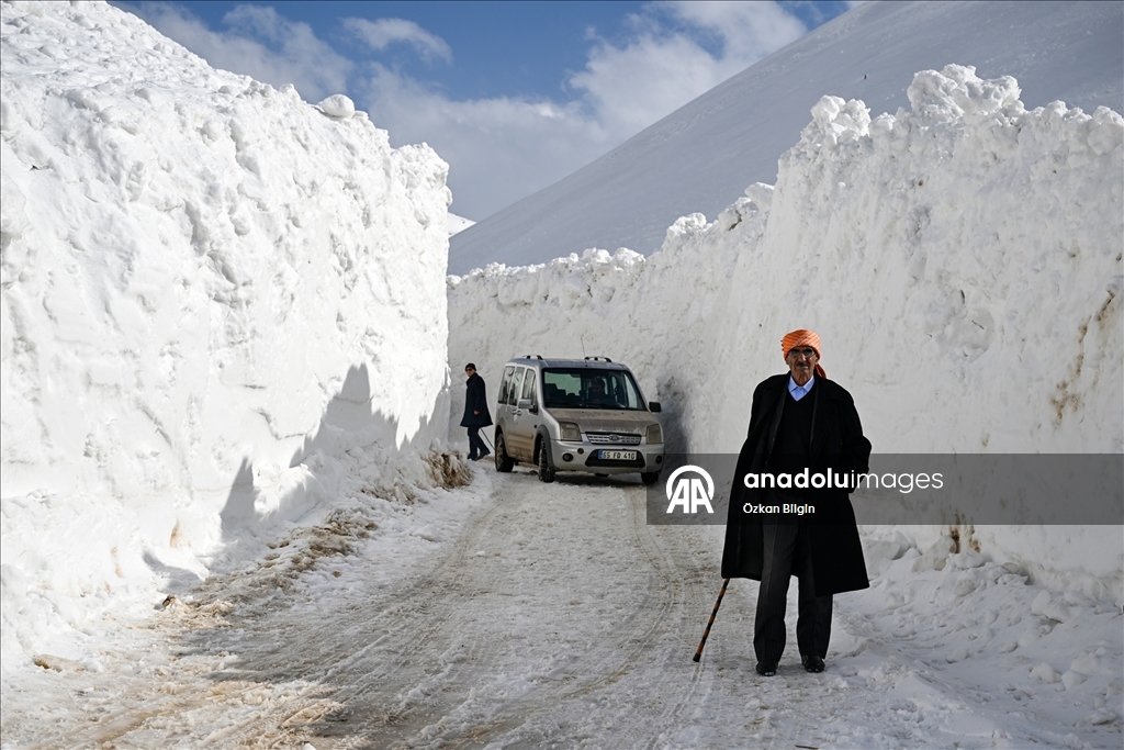 Van'ın Başkale ilçesine bağlı kırsal Sualtı Mahallesi'nde yaşayanlar, çığ nedeniyle metrelerce kar yığının bulunduğu bölgede açılan "kar koridoru"ndan geçerek ilçeye ulaşabiliyor.