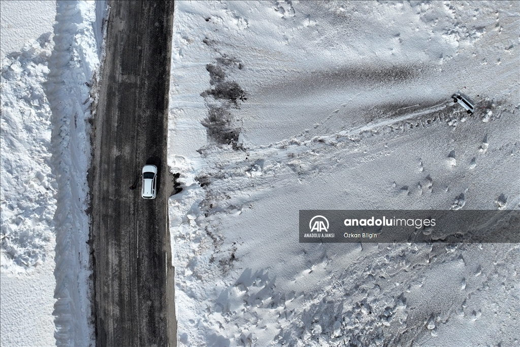 Van'da karla mücadele ekipleri, 22 Aralık'tan bu yana kar nedeniyle kapalı olan Van-Bahçesaray kara yolunu günlerce süren çalışma sonucu ulaşıma açtı. Çığ tehlikesi nedeniyle 22 Aralık'tan bu yana kapalı olan Van-Bahçesaray kara yolunda biriken kar yığınının temizlenmesi için bölgenin zorlu coğrafyasında çalışma yürütüldü. Karayolları 11. Bölge Müdürlüğüne bağlı ekipler, uzun uğraşlar sonucu 42 kilometrelik yolu kardan temizleyerek ulaşımı sağladı. ( Özkan Bilgin - Anadolu Ajansı )Özkan Bilgin