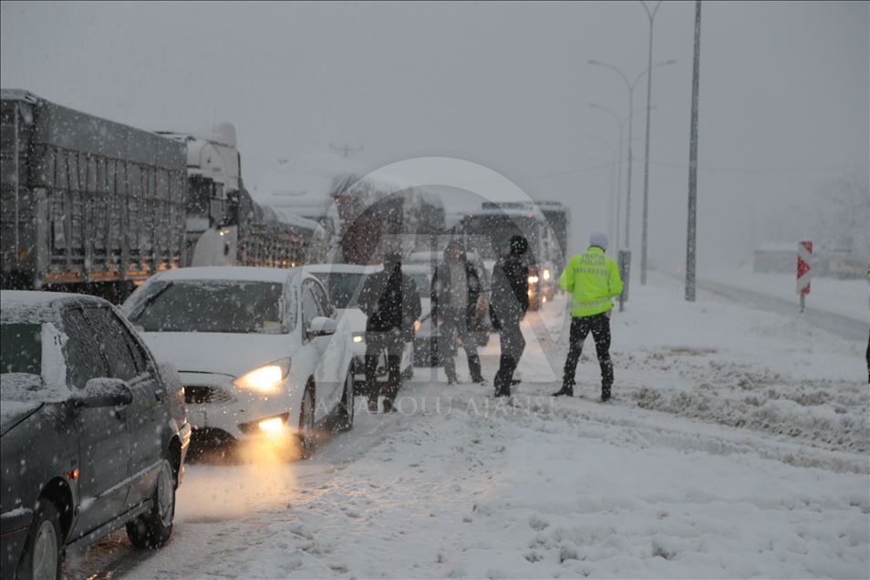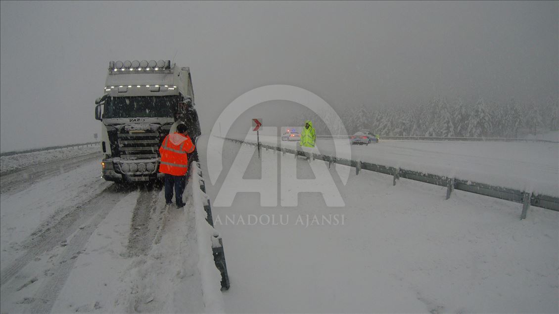 Kahramanmaraş-Kayseri kara yolunun Kayseri istikameti, yoğun kar nedeniyle ulaşıma kapandı. ( İsmail Hakkı Demir - Anadolu Ajansı )İsmail Hakkı Demir