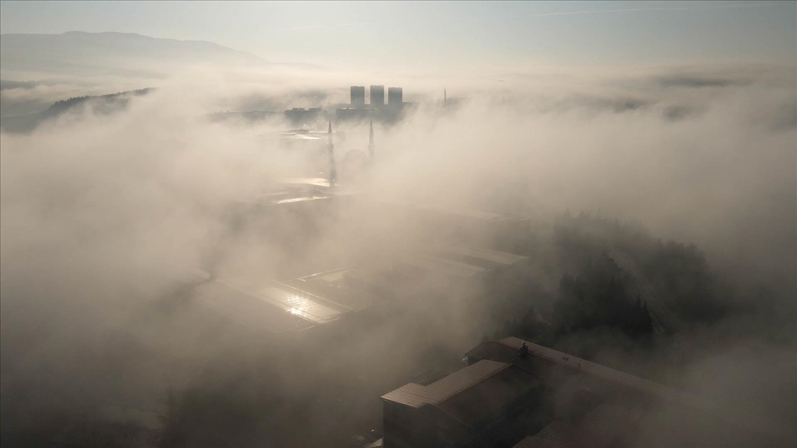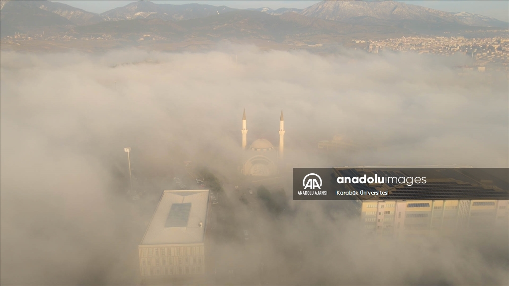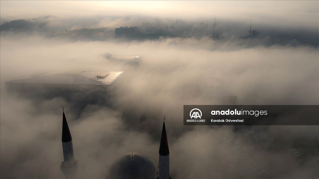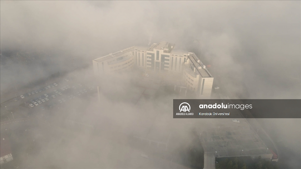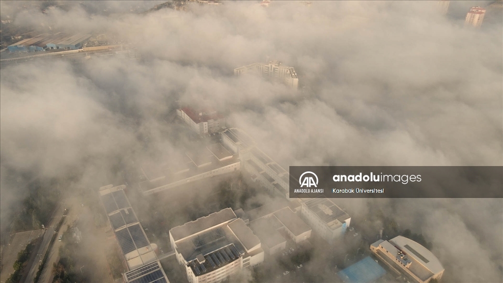 Karabük Üniversitesi yerleşkesinde etkili olan sisin oluşturduğu manzara, drone ile görüntülendi.