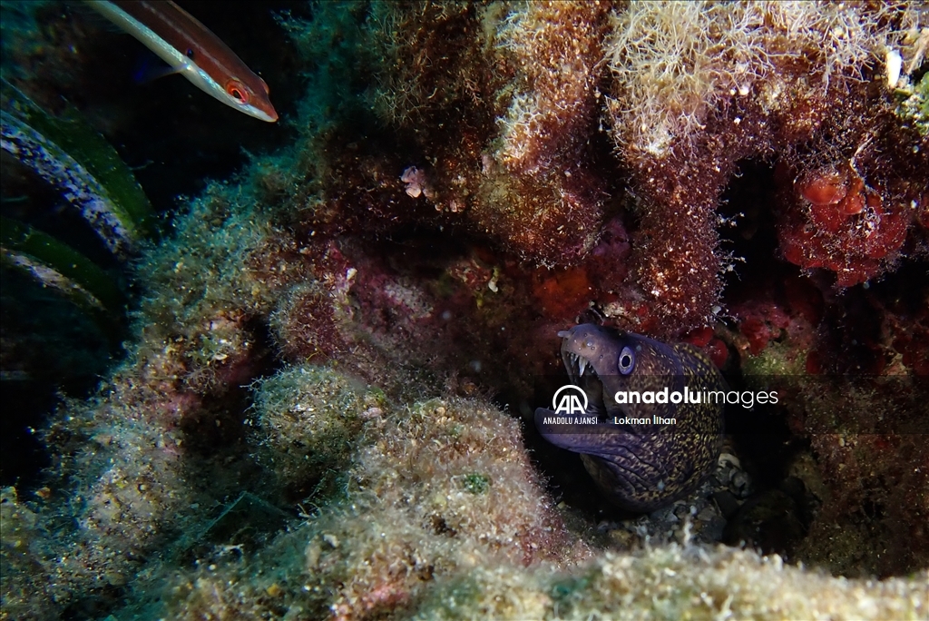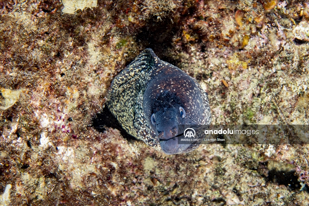 İzmir'in Karaburun kıyıları yapay ve doğal resifleri, deniz çayırları ve kovuklarla sahip olduğu canlı çeşitliliği sayesinde birçok dalgıç ve su altı fotoğrafçısını cezbediyor. Fotoğrafta Karaburun'da bir kovukta yaşayan müren balığı görülüyor.