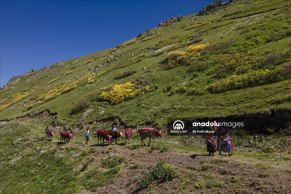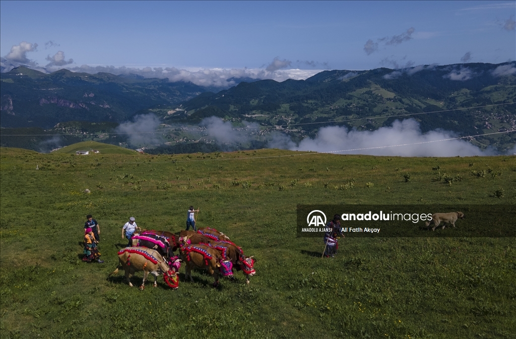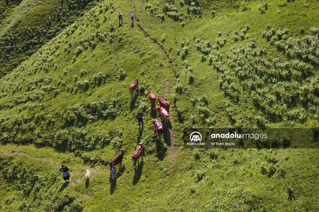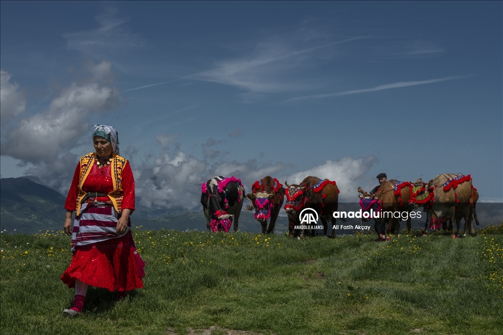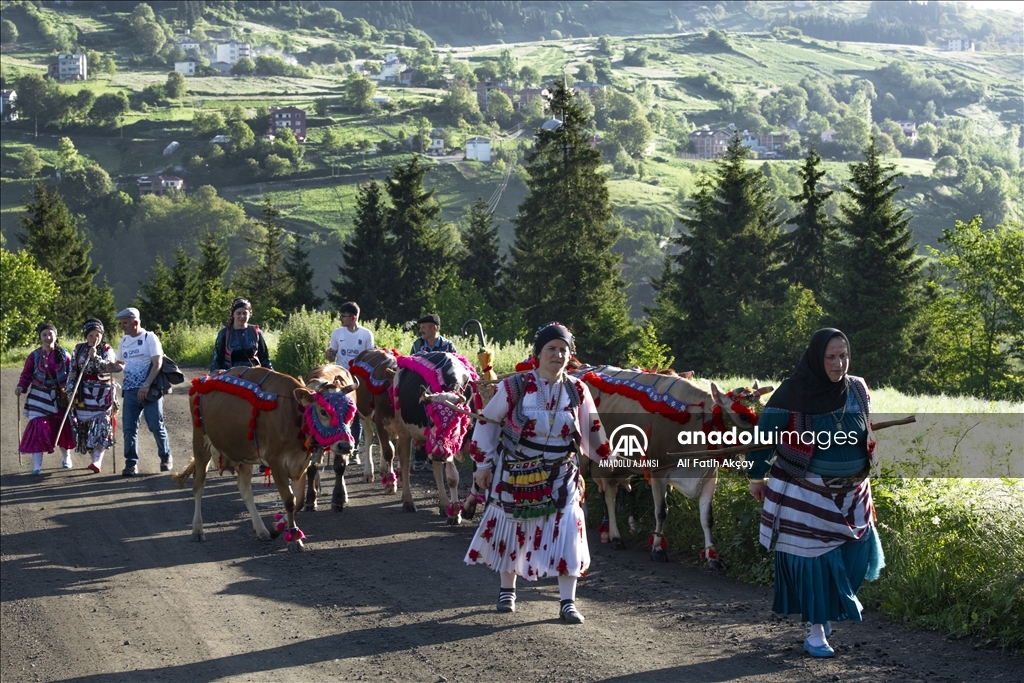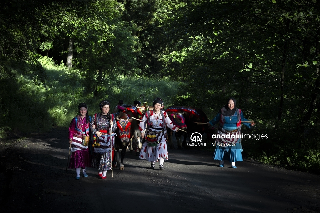 Karadeniz'de besicilerin şenlik havasında geçen yayla yolculuğu başladı. Yöresel kıyafetler giyip, hayvanlarını nazarlık, gerdanlık, burunluk, kaşlık gibi rengarenk malzemelerle süsleyen besiciler, adeta şenlik havasında yaylaya yolculuk yapıyor.