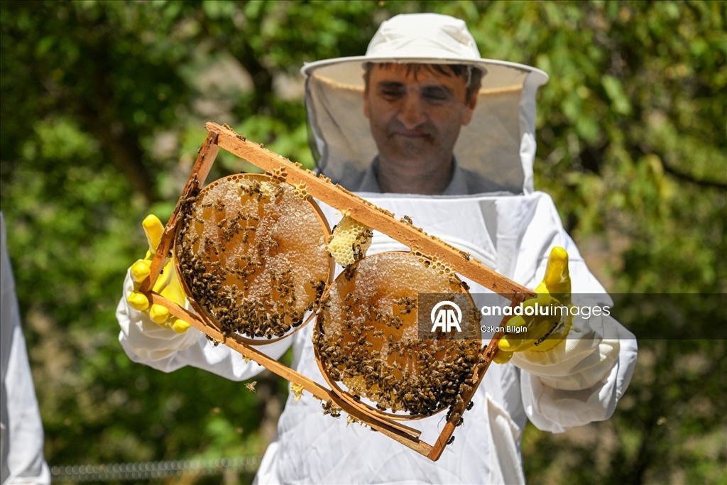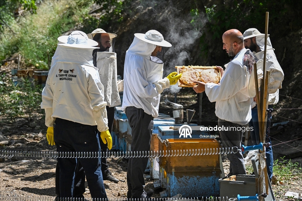 Van'ın Çatak ilçesinde 2 bin 700 rakımlı bölgelerde karakovan balının hasadına başlayan arıcılar, bitki çeşitliliğinin artması ve mevsim şartlarının uygun olmasının etkisiyle bu yıl yüksek verim almanın sevincini yaşıyor.