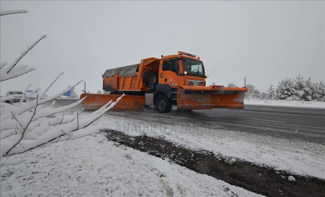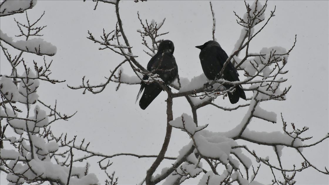 Kars'ın Sarıkamış ilçesinde kar kalınlığı 15 santimetreye ulaştı. Karayolları 18. Bölge Müdürlüğü ekipleri Kars-Erzurum kara yolunda kar küreme, Sarıkamış Belediyesi ekipleri de kaldırımlarda temizlik çalışması yaptı. Karla kaplı ağaçlarda yiyecek arayan kuşlar renkli görüntüler oluşturdu. ( Hüseyin Demirci - Anadolu Ajansı )Hüseyin Demirci