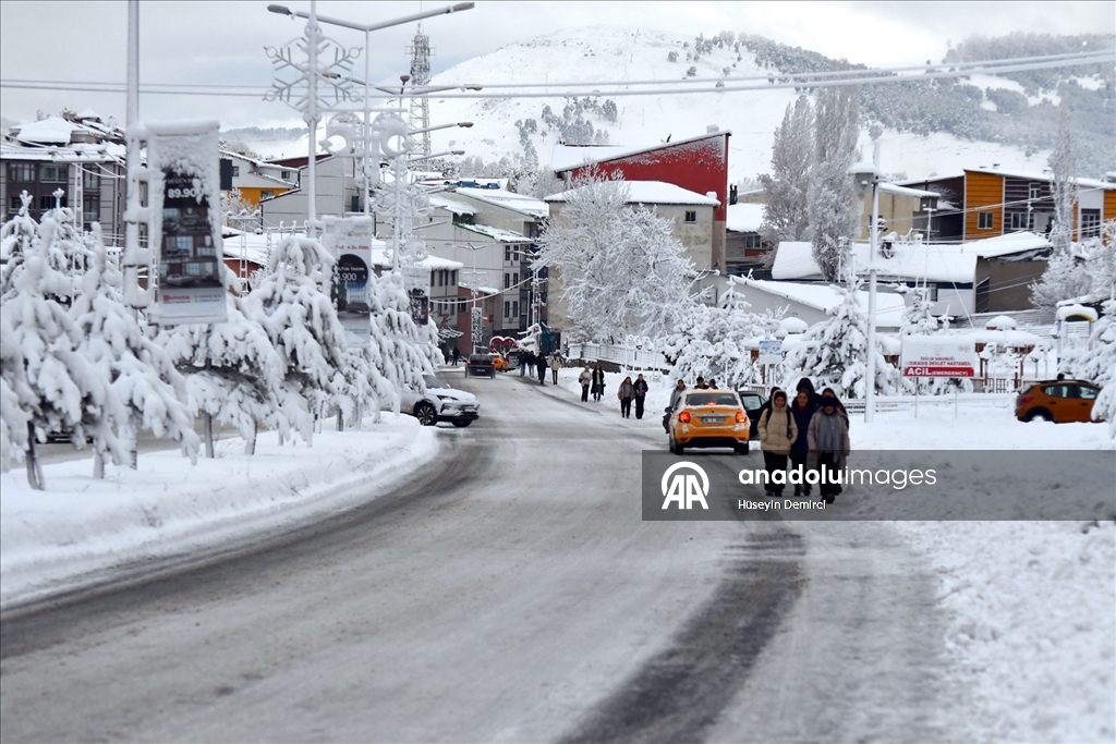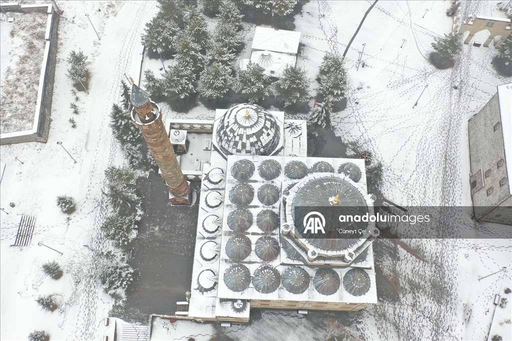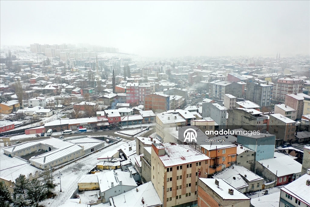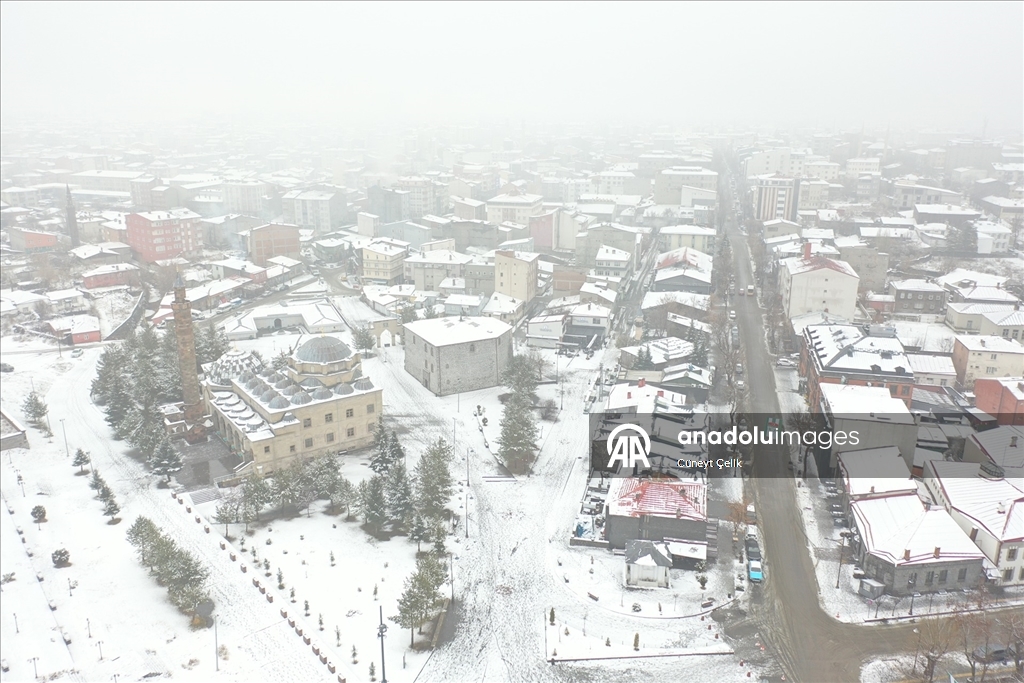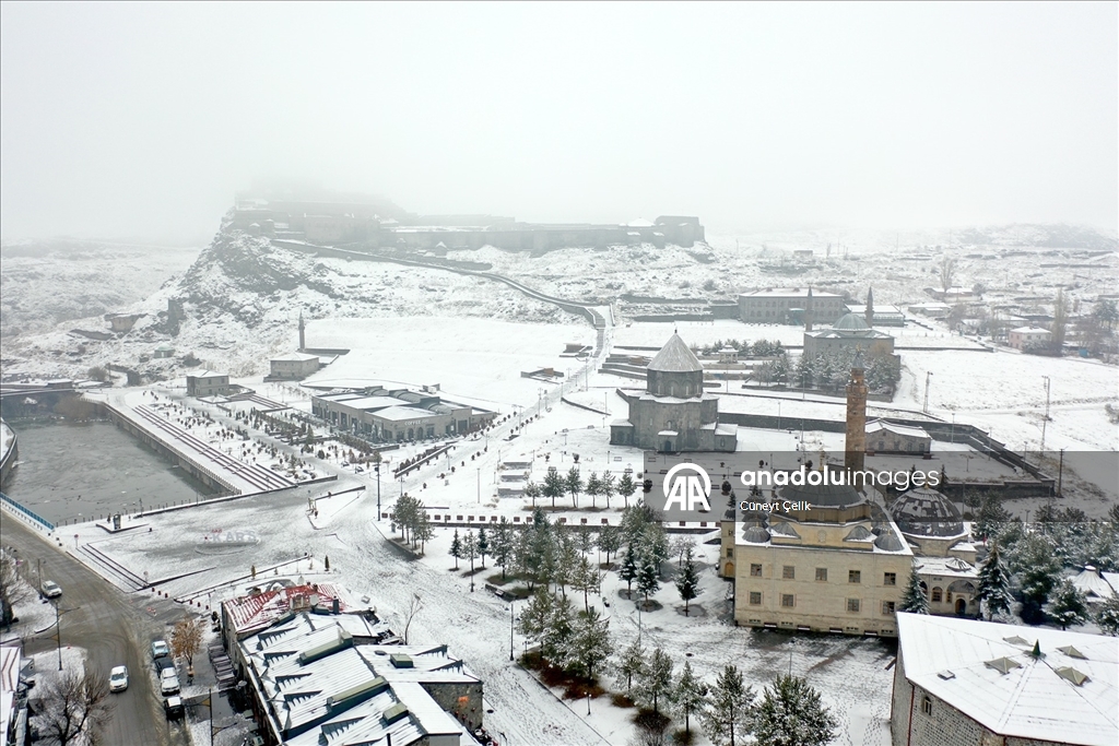 Kars'ta iki gündür etkili olan kar yağışıyla şehir merkezi beyaza büründü. Tarihi Kars Kalesi ve tarihi yapılar beyaz örtüyle kaplandı.