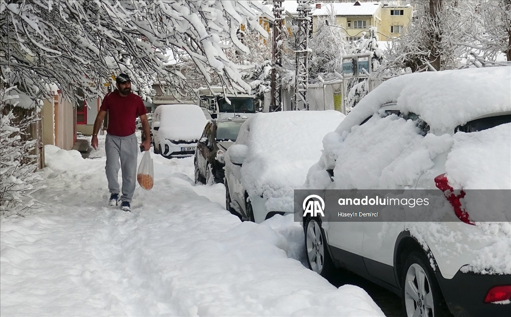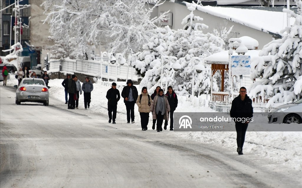 Kars'ta iki gündür aralıklarla devam eden kar, yaşamı olumsuz etkiliyor. Kar nedeniyle sürücüler yolda ilerlemekte, vatandaşlar ise yürümekte güçlük çekti. (Hüseyin Demirci - Anadolu Ajansı)Hüseyin Demirci