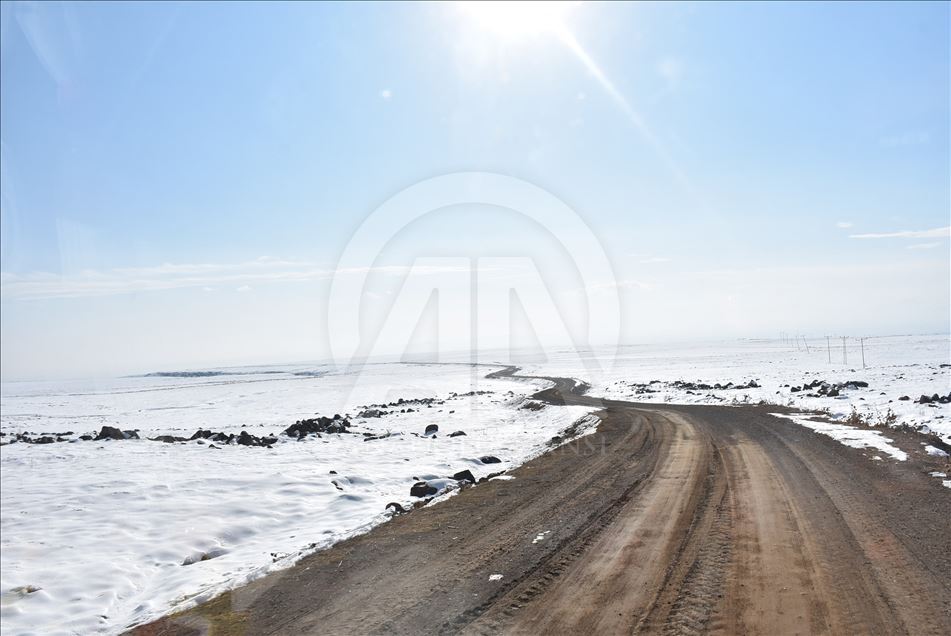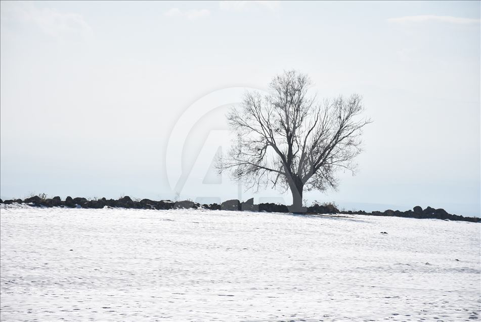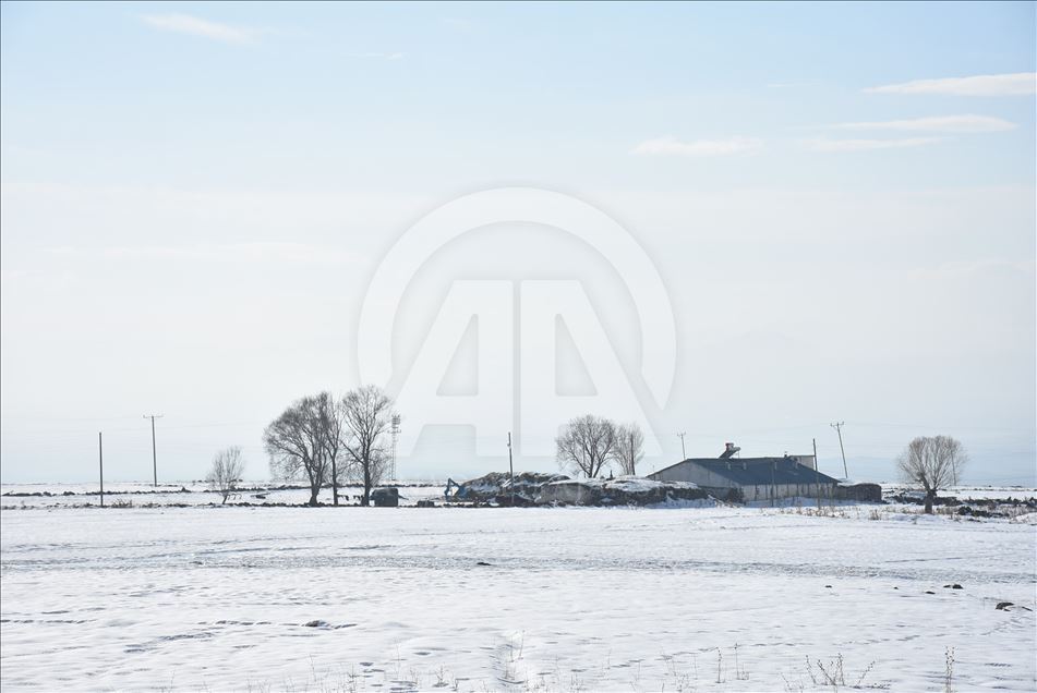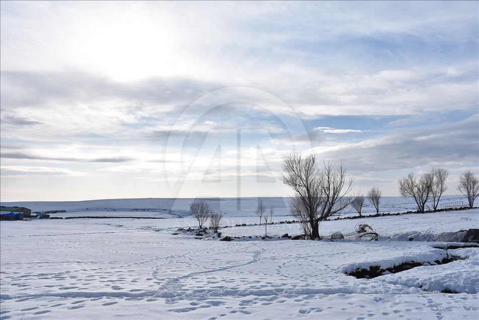 Kars'ın Arpaçay ilçesinde kar yağışının ardından etkili olan soğuk hava hayatı olumsuz etkiledi. Arazisi kar nedeniyle beyaz örtüyle kaplanan Kıraç köyünde güzel görüntüler oluştu.