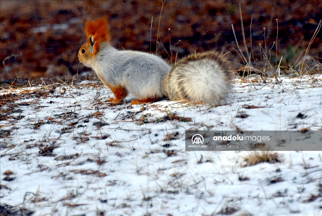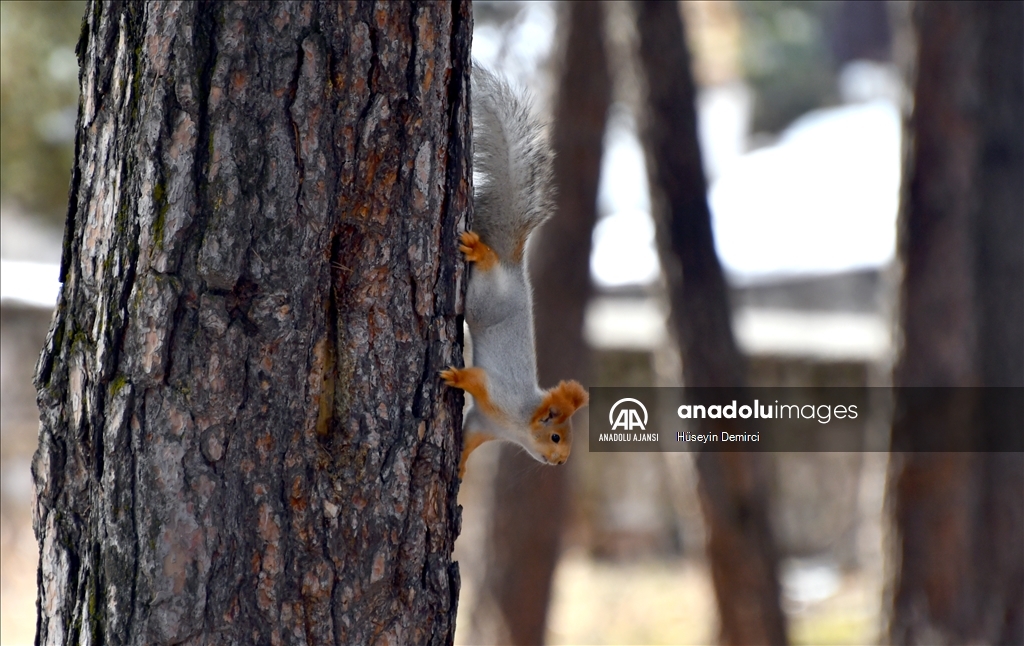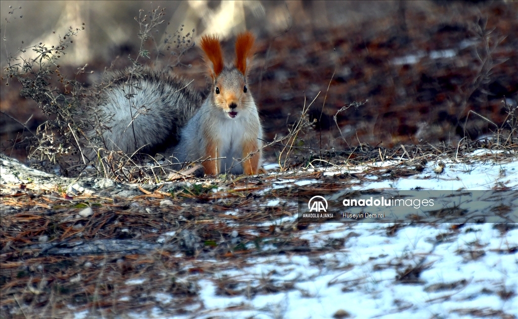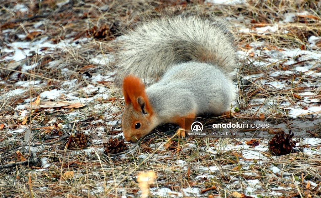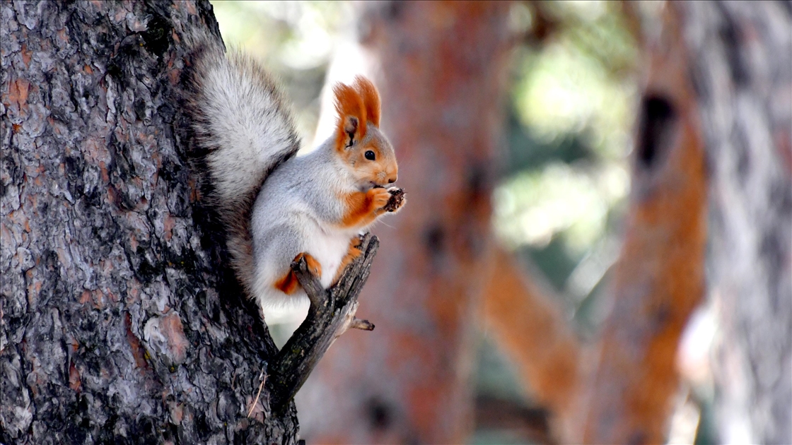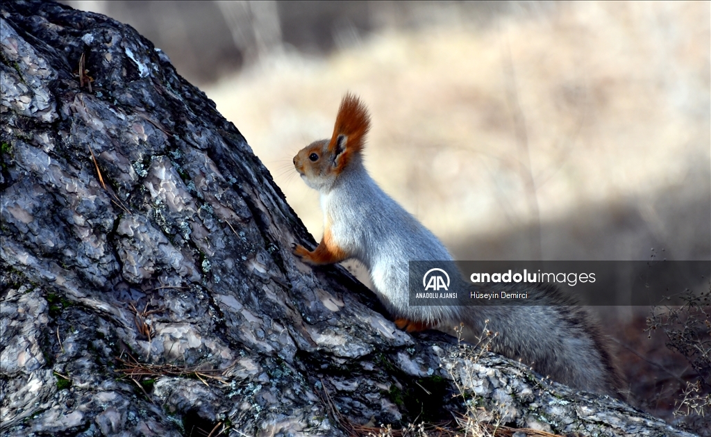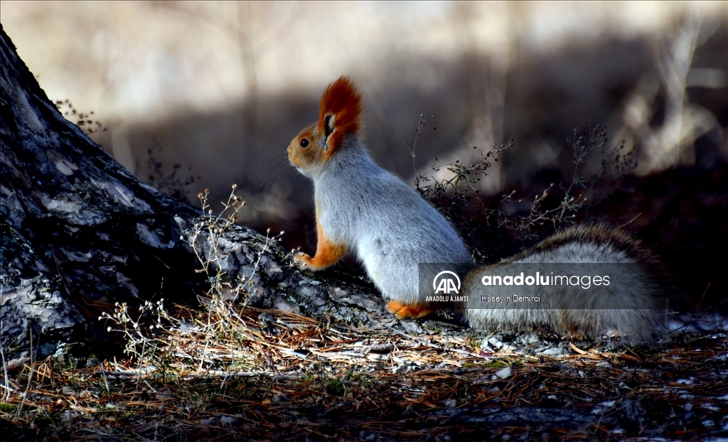 Kars'ta kızıl sincaplar yaşam alanlarında görüntülendi