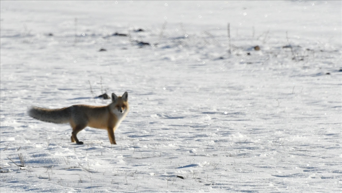 Kars'ın Sarıkamış ilçesinde kar yağışının ardından yiyecek bulmakta güçlük çeken tilkiler, beyaza bürünen arazide avlanırken görüntülendi.