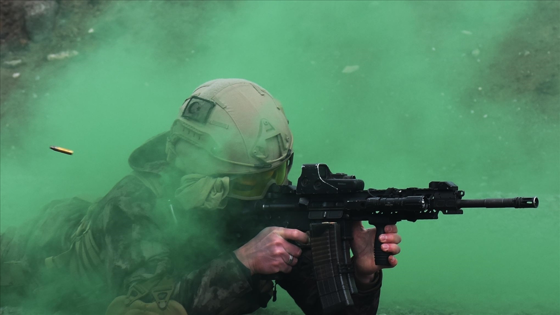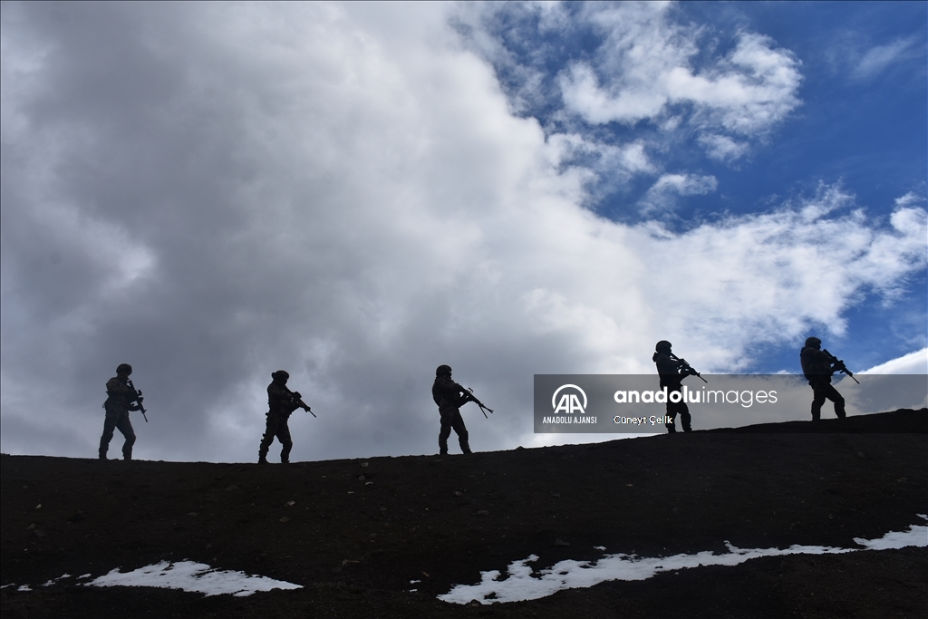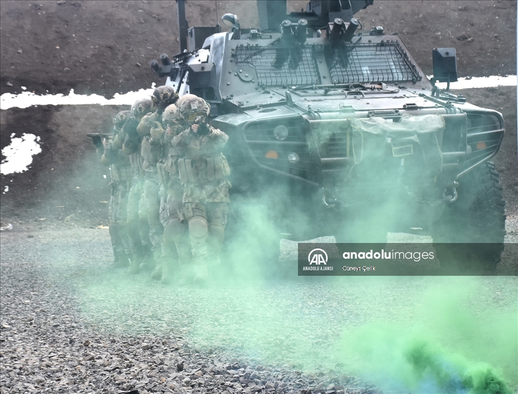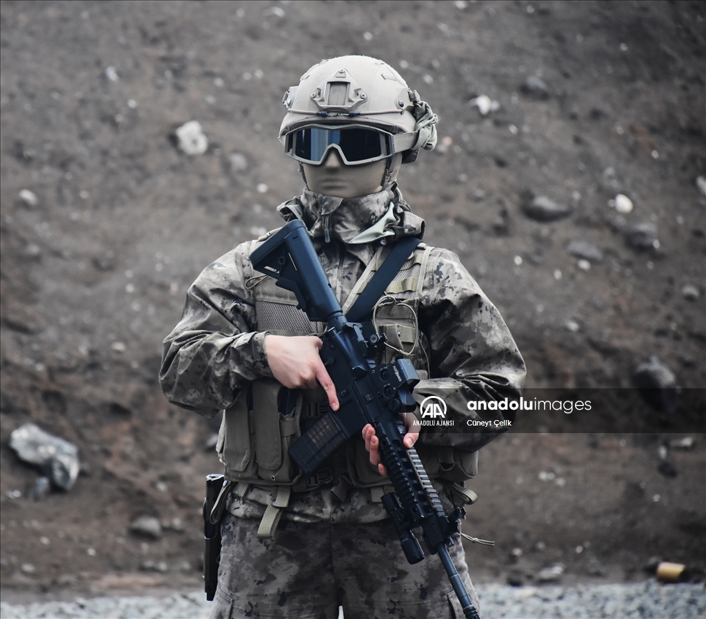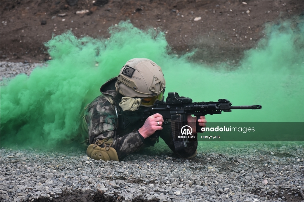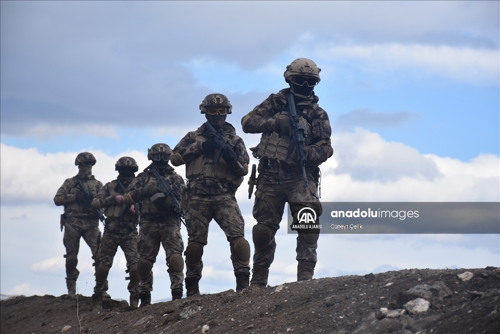 Kars'ta her koşul ve şartta görev yapabilmek için eğitim alan özel harekat polisleri (PÖH), terör operasyonu tatbikatına katıldı. ( Cüneyt Çelik - Anadolu Ajansı )Cüneyt Çelik
