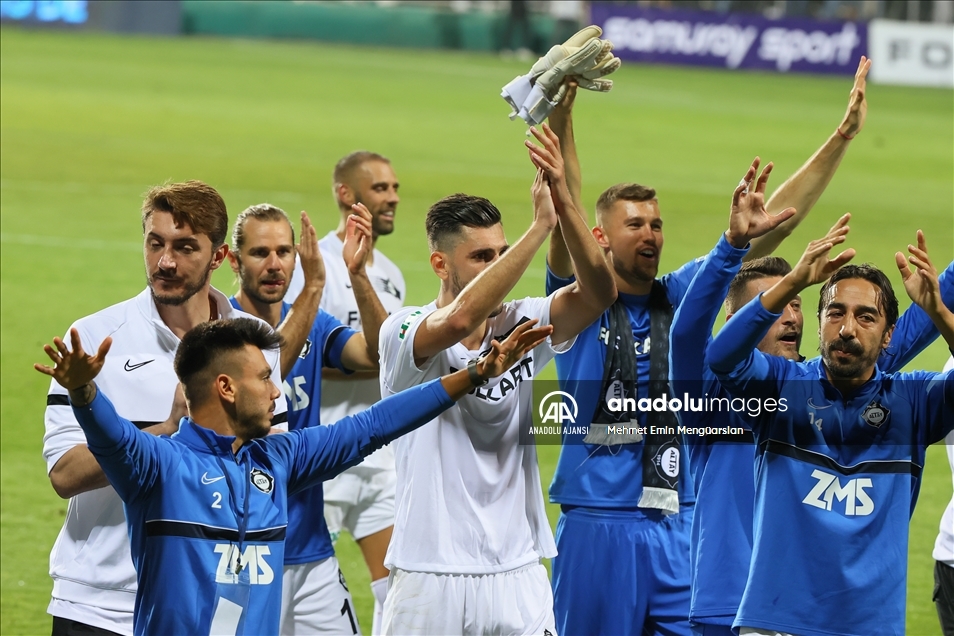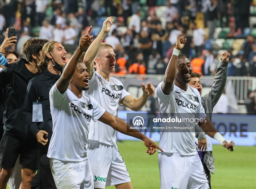 Süper Lig'in 7. haftasında Altay ile Beşiktaş, İzmir Bornova Aziz Kocaoğlu Stadı'nda karşılaştı. Karşılaşmayı 2-1 kazanan Altaylı futbolcular karşılaşma sonrası sevinç yaşadı. ( Mehmet Emin Mengüarslan - Anadolu Ajansı )Mehmet Emin Mengüarslan