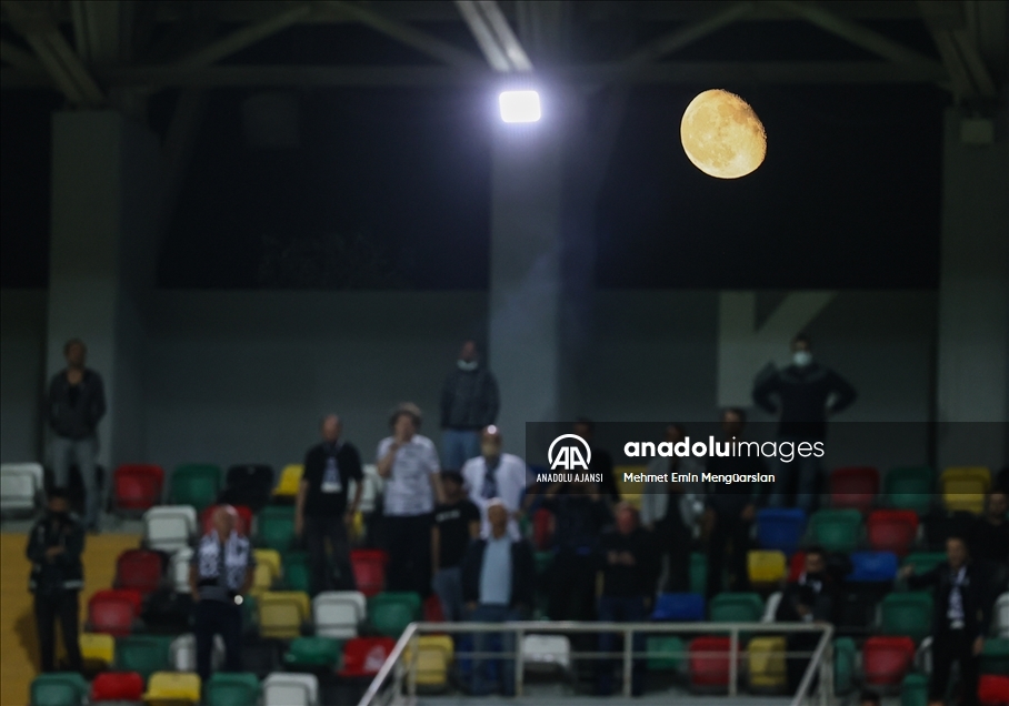 Süper Lig'in 7. haftasında Altay ile Beşiktaş, İzmir Bornova Aziz Kocaoğlu Stadı'nda karşılaştı. Karşılaşma sırasında ay Altaylı taraftarların bulunduğu tribünün üzerinde güzel görüntü oluşturdu. ( Mehmet Emin Mengüarslan - Anadolu Ajansı )Mehmet Emin Mengüarslan