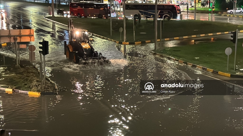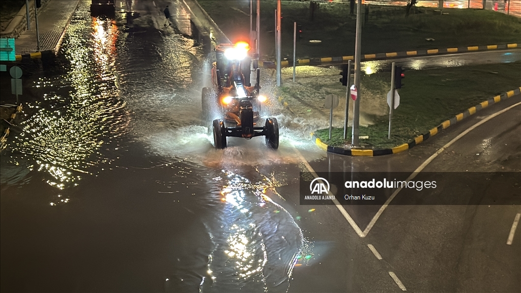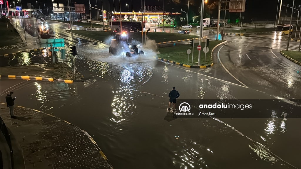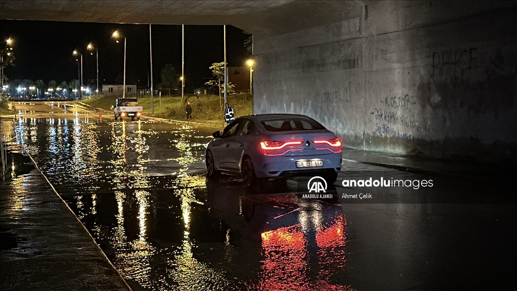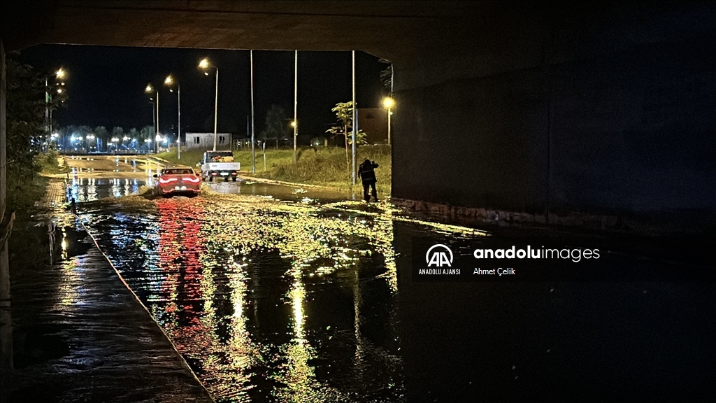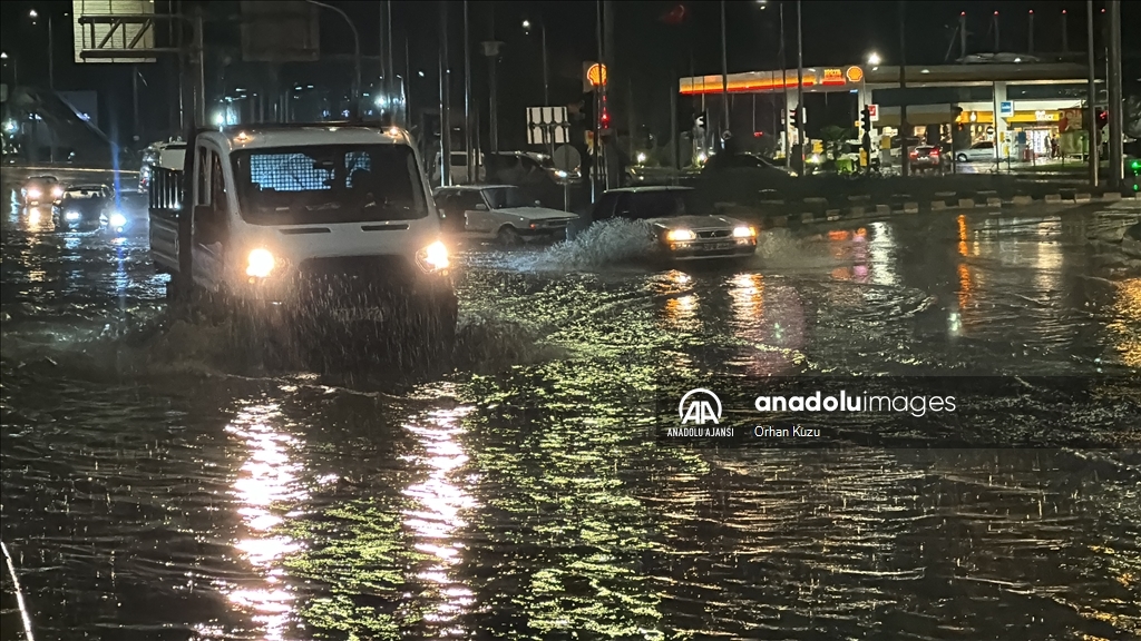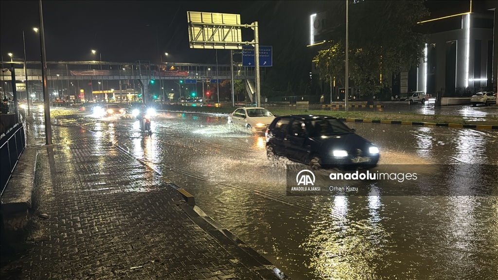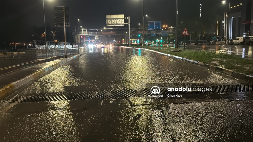 Kentte akşam saatlerinde bir anda bastıran sağanak nedeniyle yollarda su birikintileri oluştu. (Göksel Cüneyt İğde - Anadolu Ajansı)Göksel Cüneyt İğde