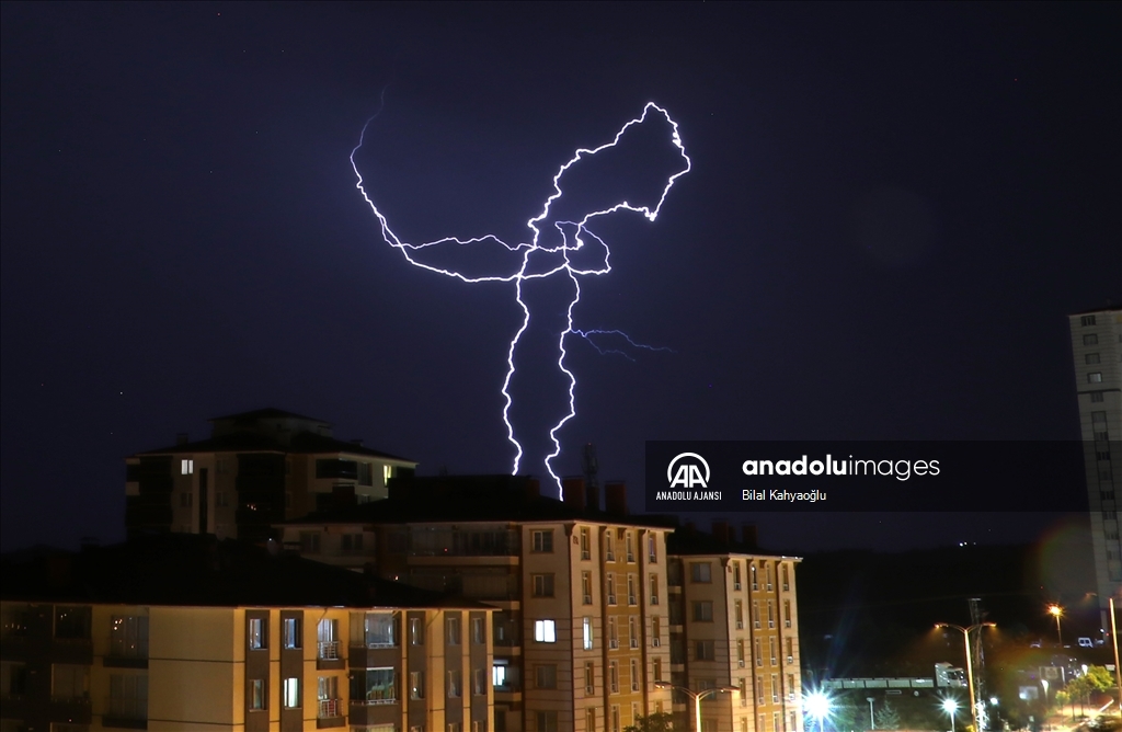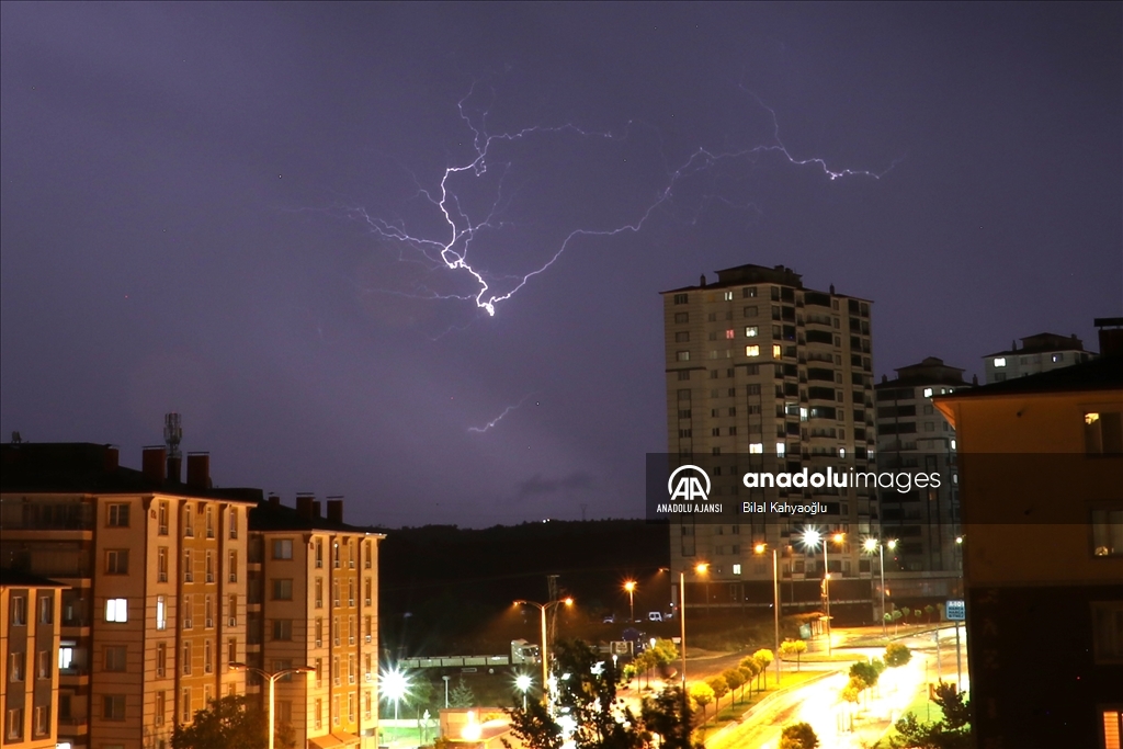 Kastamonu'da gök gürültülü sağanak etkili oldu. Kentin farklı noktalarında zaman zaman çakan şimşekler gökyüzünü aydınlattı. (Bilal Kahyaoğlu - Anadolu Ajansı)Bilal Kahyaoğlu