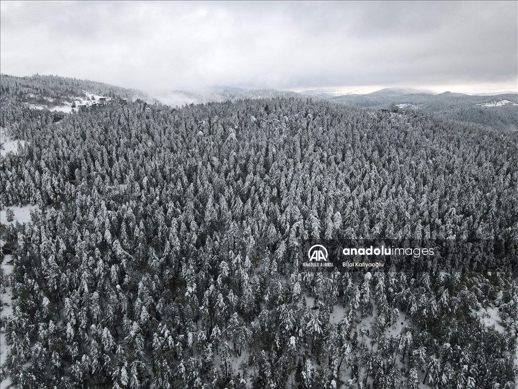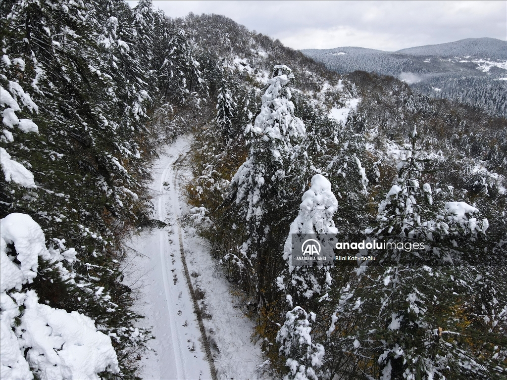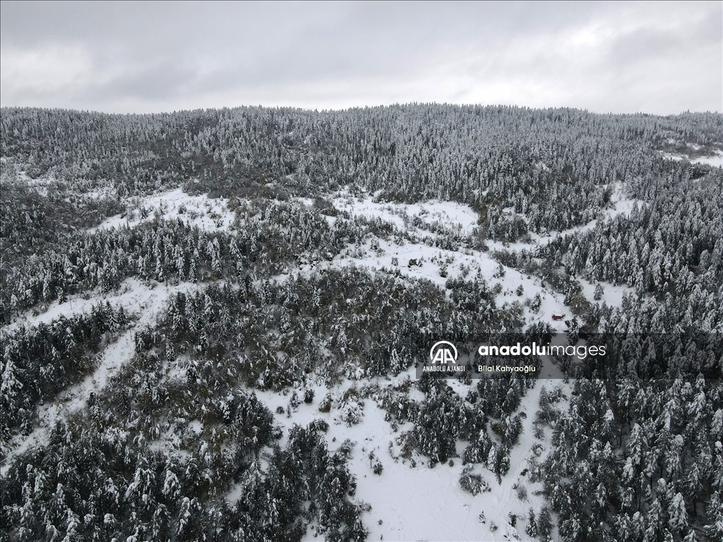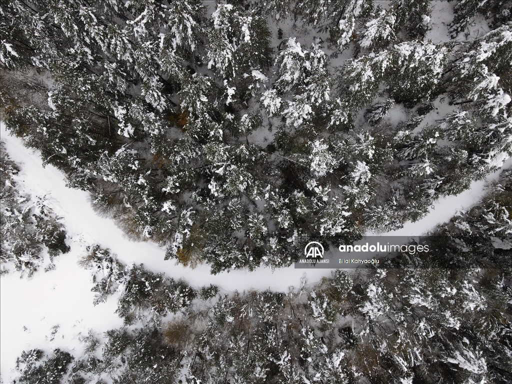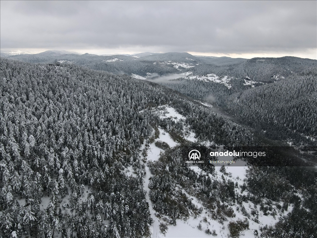 Kastamonu'da kar yağışı sonrası ormanlar dronla görüntülendi