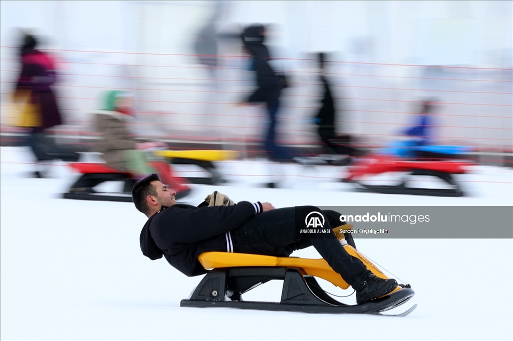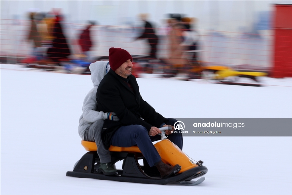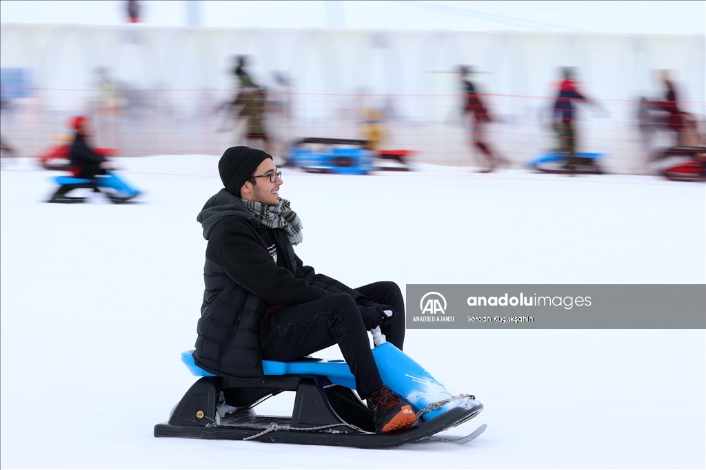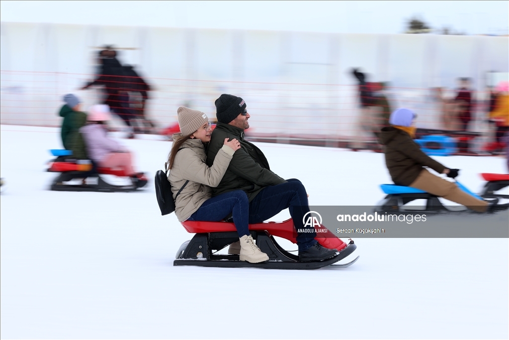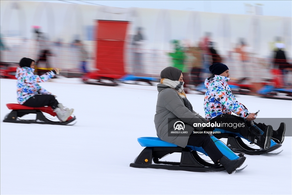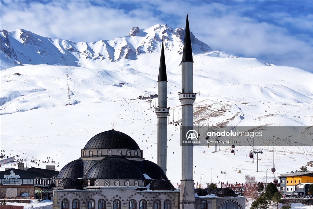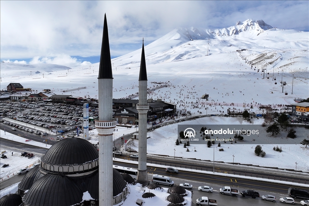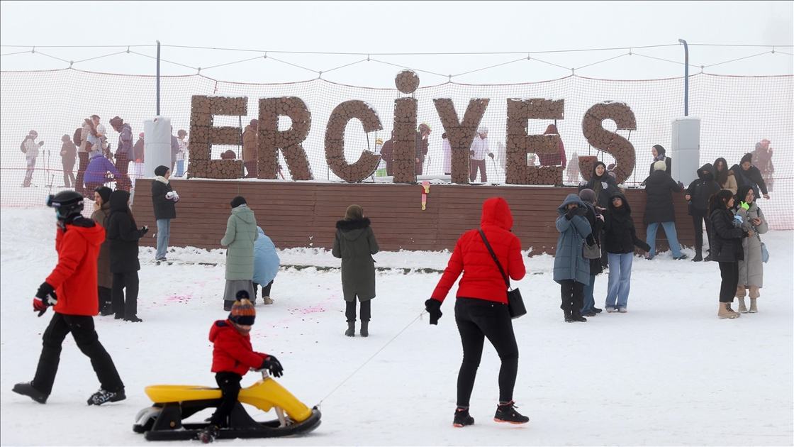 Türkiye'nin önemli kış turizmi merkezlerinden Erciyes, yarıyıl tatilinin ilk hafta sonunda 100 binin üzerinde ziyaretçiye ev sahipliği yaptı. ( Sercan Küçükşahin - Anadolu Ajansı )Sercan Küçükşahin