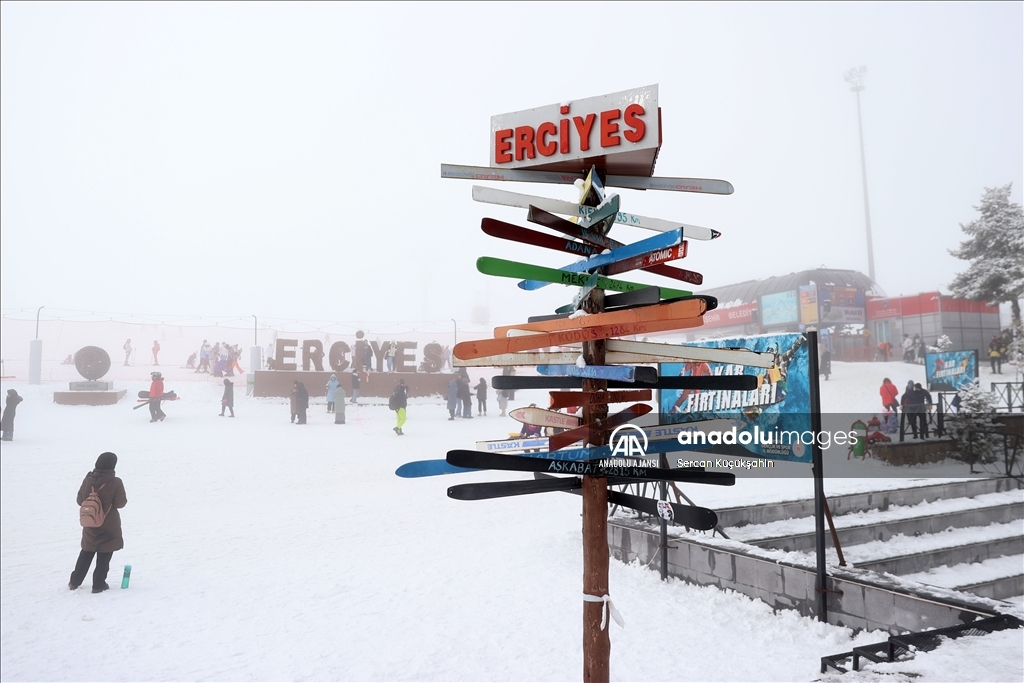 Türkiye'nin önemli kış turizmi merkezlerinden Erciyes, yarıyıl tatilinin ilk hafta sonunda 100 binin üzerinde ziyaretçiye ev sahipliği yaptı.