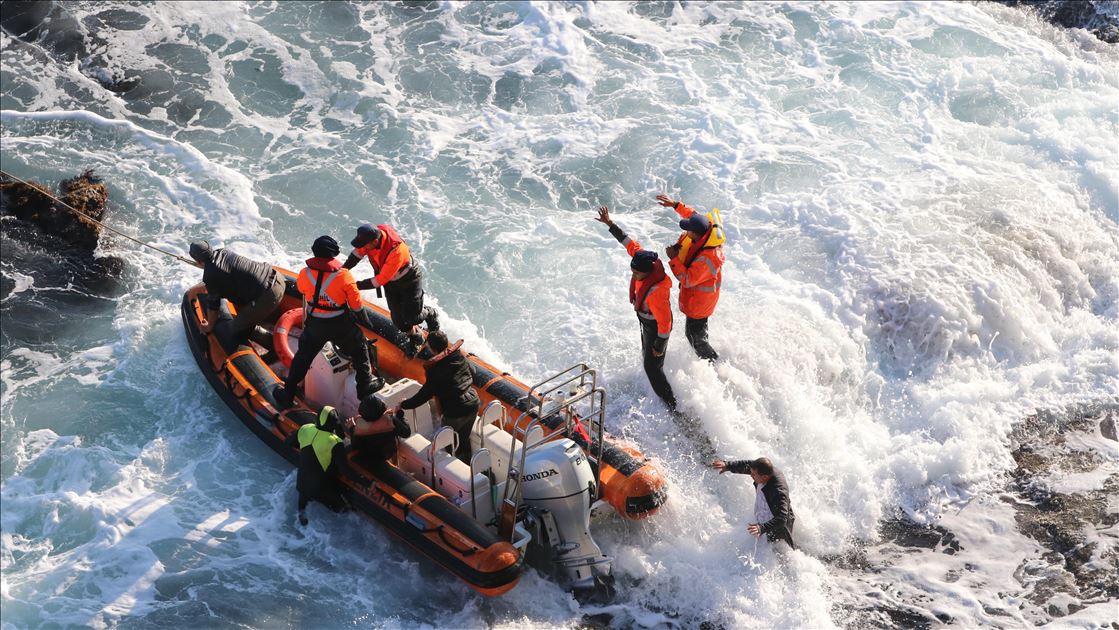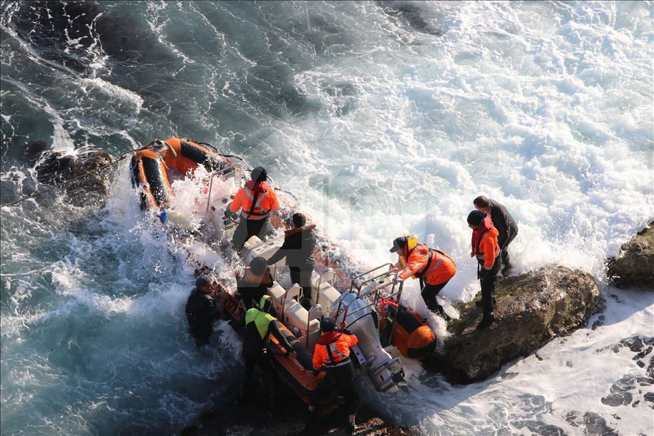 Kırklareli'nde teknelerinin karaya oturması sonucu kayalıklarda mahsur kalan balıkçılar kurtarıldı. Kayalıktaki 5 kişi ile çalışmalar sırasında dalgalar nedeniyle bölgede mahsur kalan kurtarma ekibi balıkçı teknesiyle kıyıya ulaştırıldı.