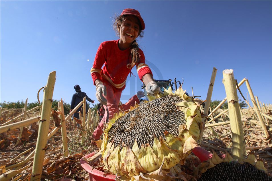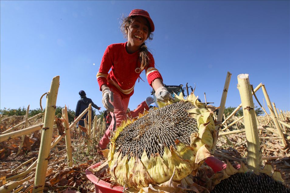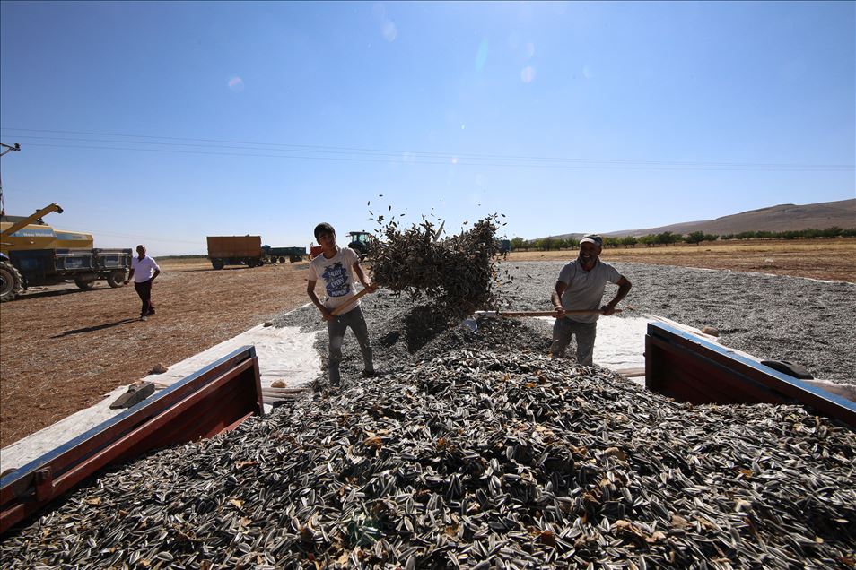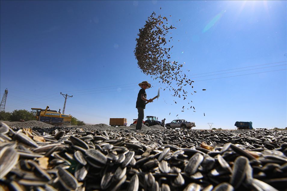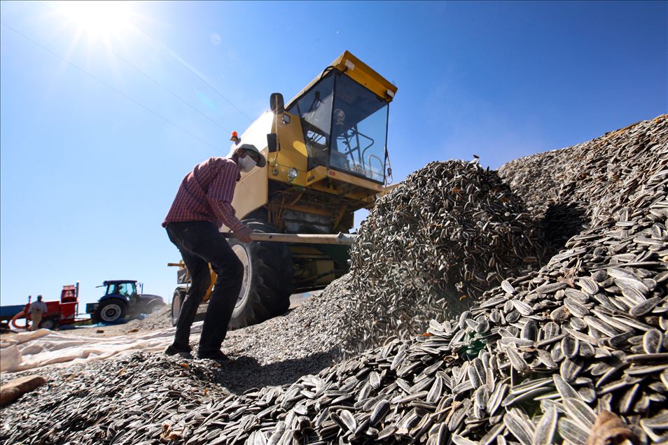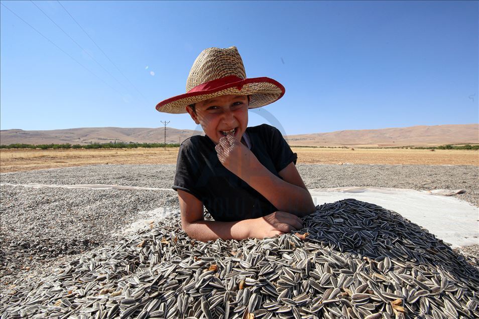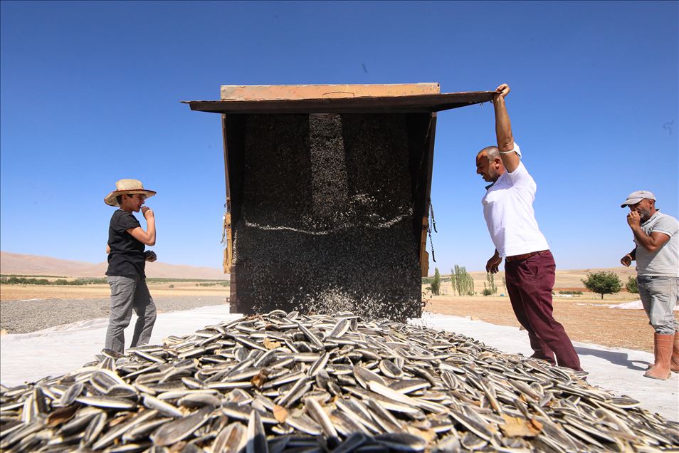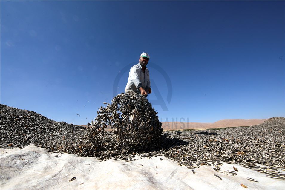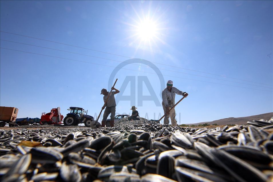 Kayısı diyarında ayçiçeği hasadı