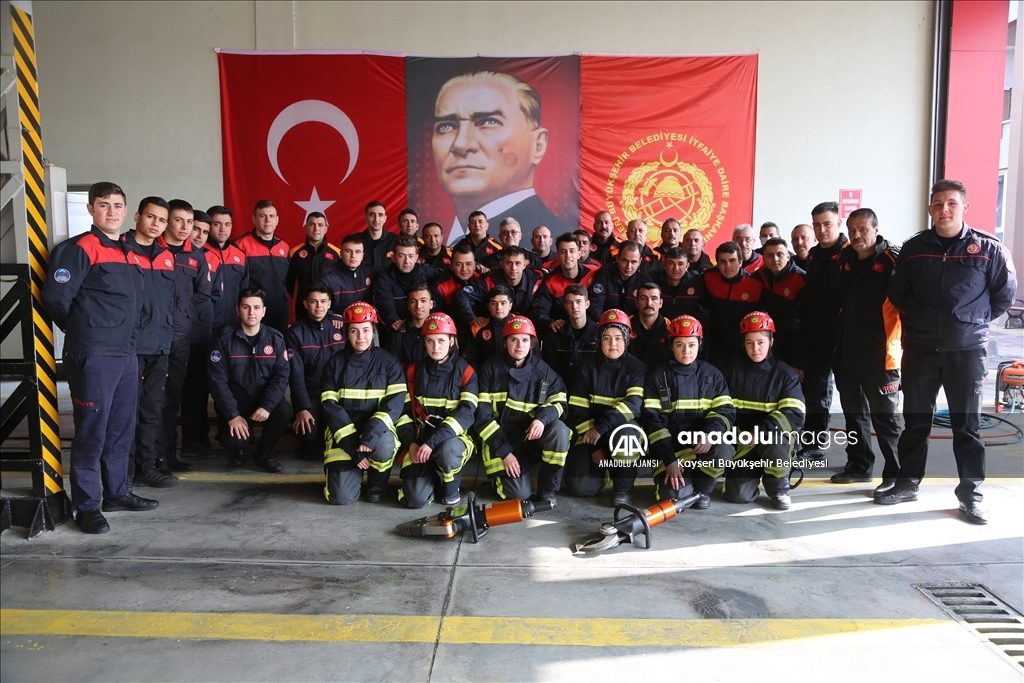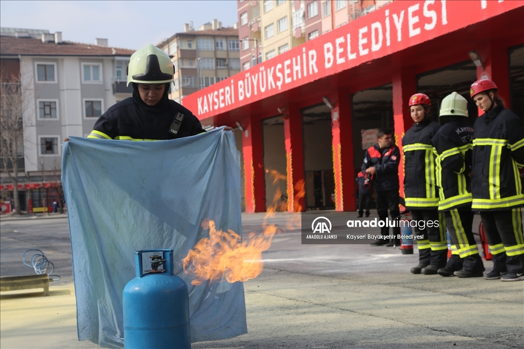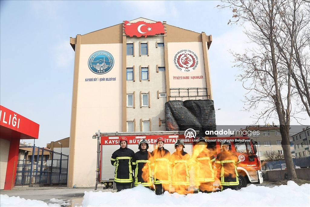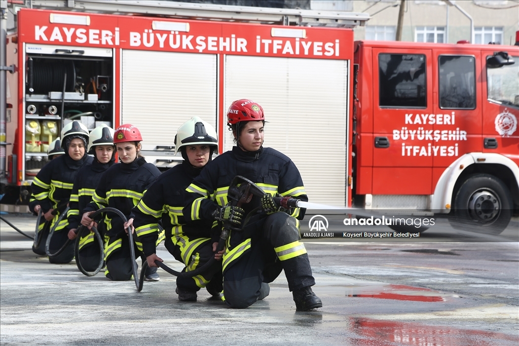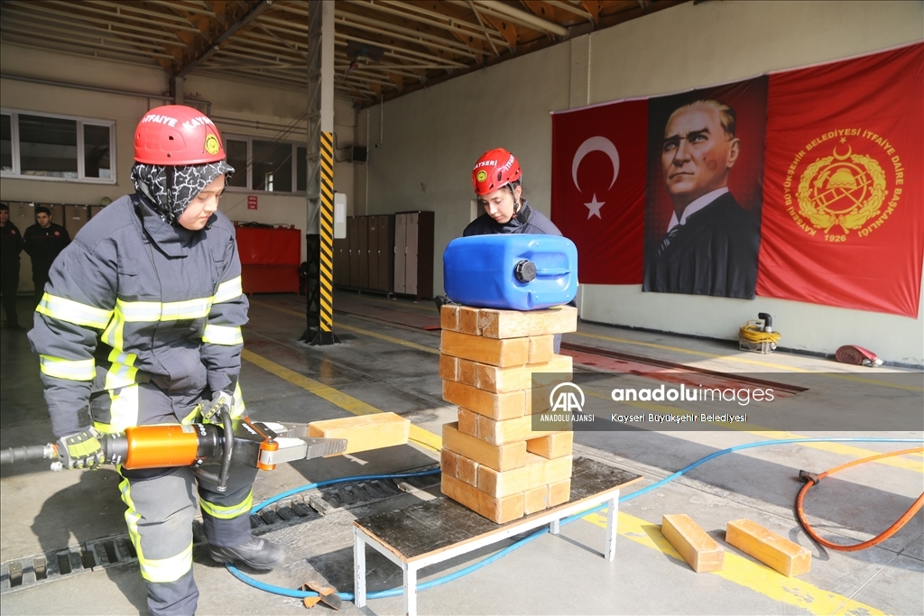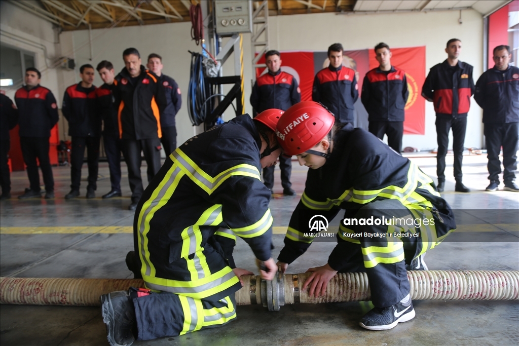 Kayseri Büyükşehir Belediyesi İtfaiye Daire Başkanlığında, aralarında 6 kız öğrencinin de bulunduğu stajyer itfaiyeciler zorlu eğitimin yanı sıra, yangın ve kurtarma tatbikatları ile mesleğe hazırlanıyor.