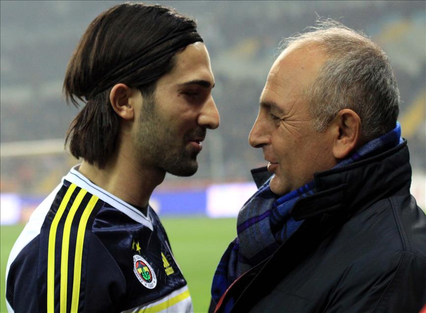 SPOR TOTO SUPER LIG'DE KAYSERISPOR ILE FENERBAHCE KARSILASTI. MACTAN ONCE FENERBAHCELI FUTBOLCU HASAN ALI, KAYSERISPOR GENEL MENAJERI SULEYMAN HURMA ILE GORUSTU. (ANADOLU AJANSI - MUSTAFA ONAL) (20121202)MUSTAFA ONAL