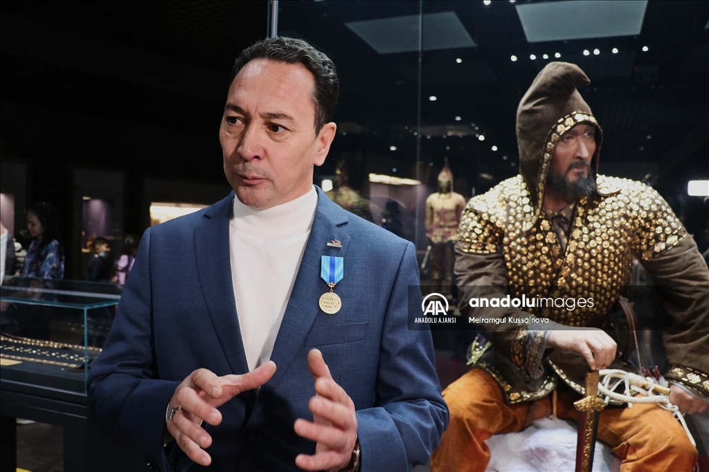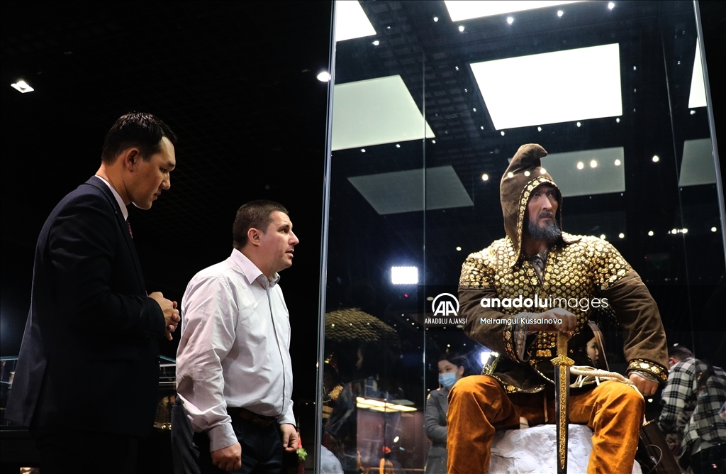 Kazakistan'ın başkenti Nur Sultan'da, 2019'da bulunan 2 bin 500 yıllık "Altın Elbiseli Adam"ın rekonstrüksiyonu törenle tanıtıldı.