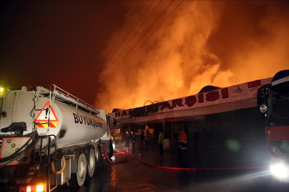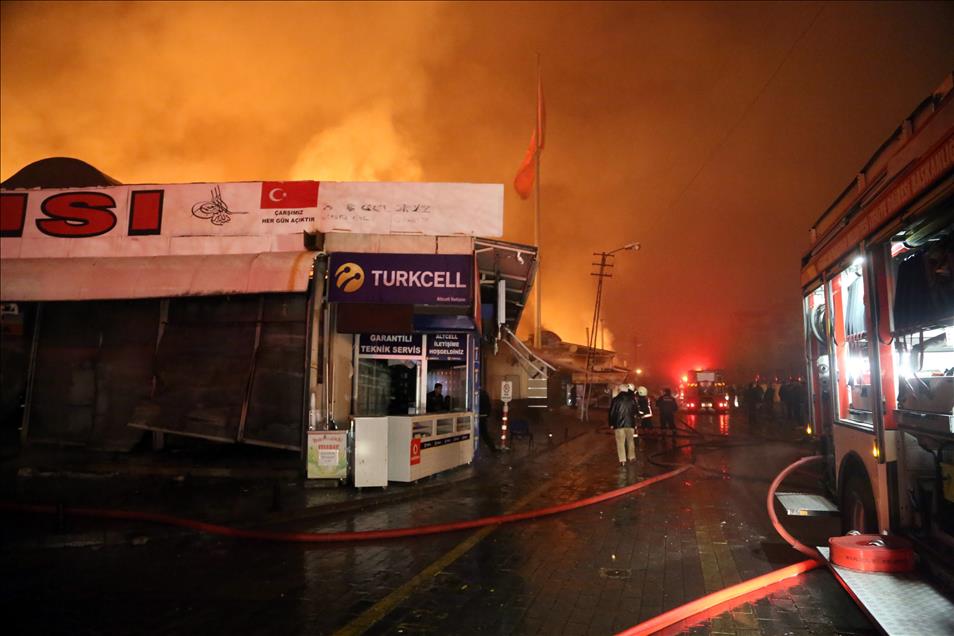 Başkent'in Keçiören ilçesindeki Osmanlı Halk Pazarı'nda yangın çıktı. Olayda 250 iş yeri yandı. Çok sayıda itfaiye ekibinin müdahale ettiği yangında zaman zaman patlamaların da yaşandı. (Bülent Yılmaz - Anadolu Ajansı)Bülent Yılmaz