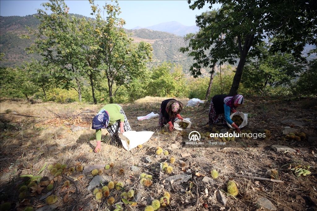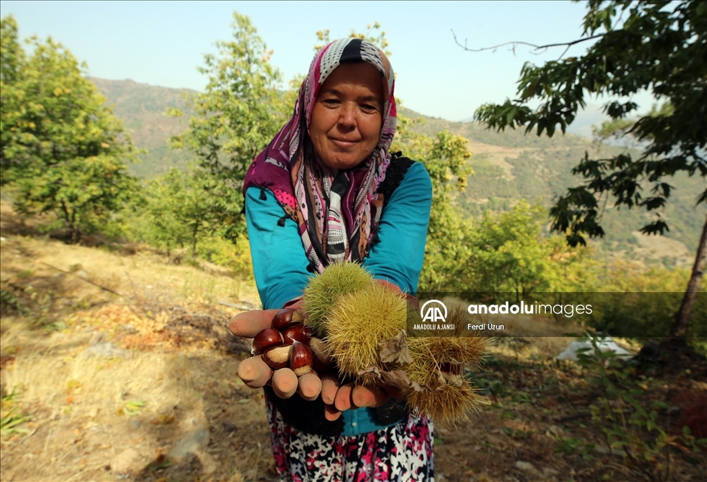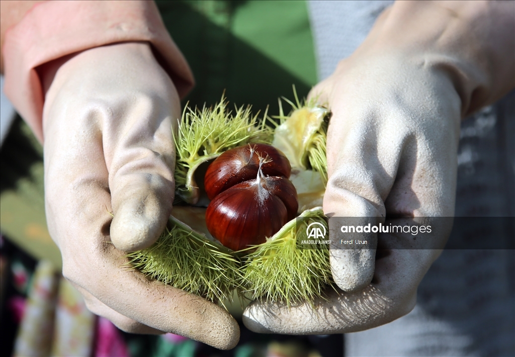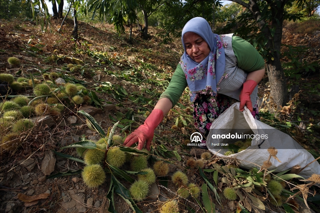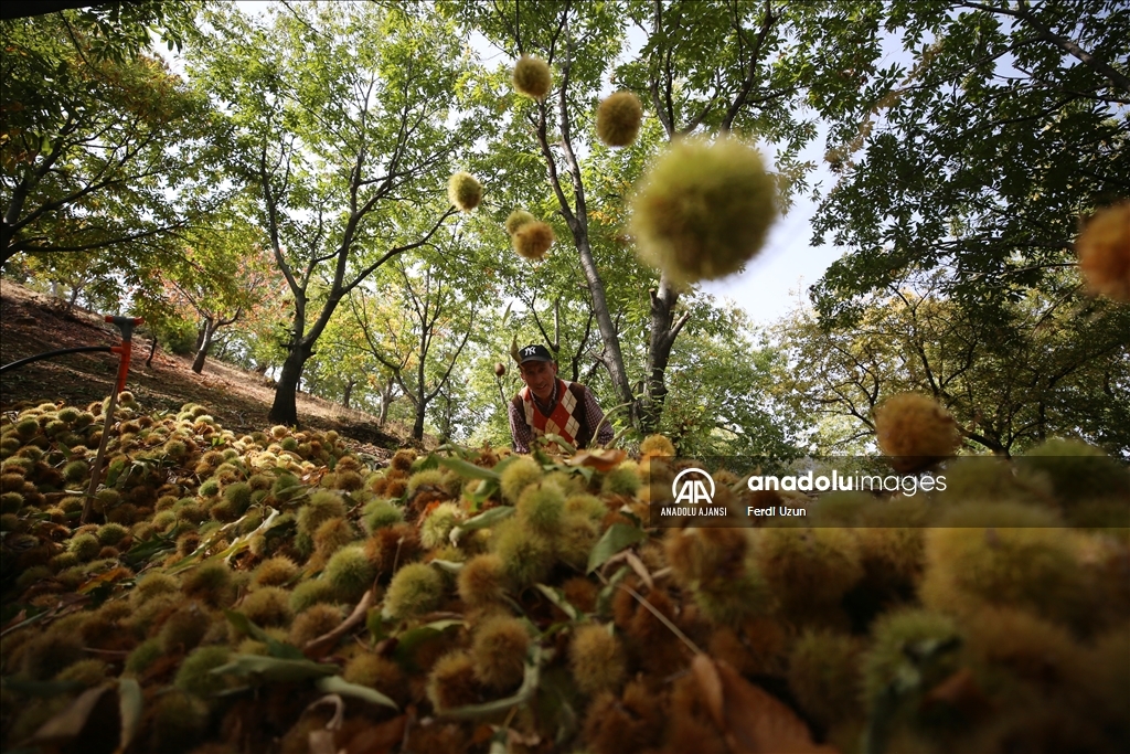 Aydın'da "sırıkçı" adı verilen kestane işçileri, güvenlik ekipmanı olmadan çıktıkları ağaç dallarında adeta ip cambazı gibi hareket ederek sırıklarla kestane hasadı yapıyor. Kestane işinde çalışan kadınlar ise yere düşen kestaneleri, eldivenle tek tek toplayıp çuvallara dolduruyor. ( Ferdi Uzun - Anadolu Ajansı )Ferdi Uzun
