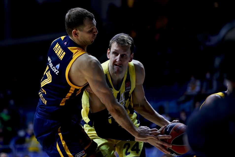 Basketbol THY Avrupa Ligi'nde Khimki Moskova, Fenerbahçe Beko ile Arena Mytischi’de karşılaştı. Fenerbahçe Beko oyuncusu Jan Vesely (24) rakibi Khimki Moskova oyuncusu Sergey Monia (12) ile mücadele etti.