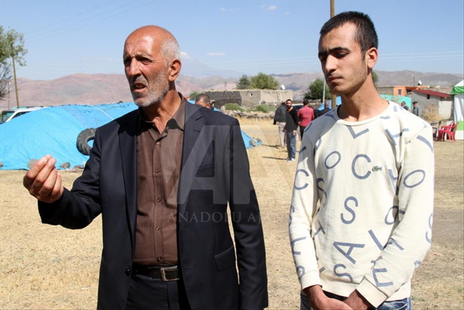 Ağrı'nın Doğubayazıt ilçesindeki Tendürek Dağı Gökçebulak köyü mevkisinde PKK'lı teröristlerce düzenlenen saldırıda şehit olan köy korucularının yakınları terör örgütü PKK'ya tepki gösterdi. Şehit Mehmet Bakındı'nın abisi İsmet Bakındı (solda), bir açıklama yaptı. ( Musa Can Eraslan - Anadolu Ajansı )Musa Can Eraslan