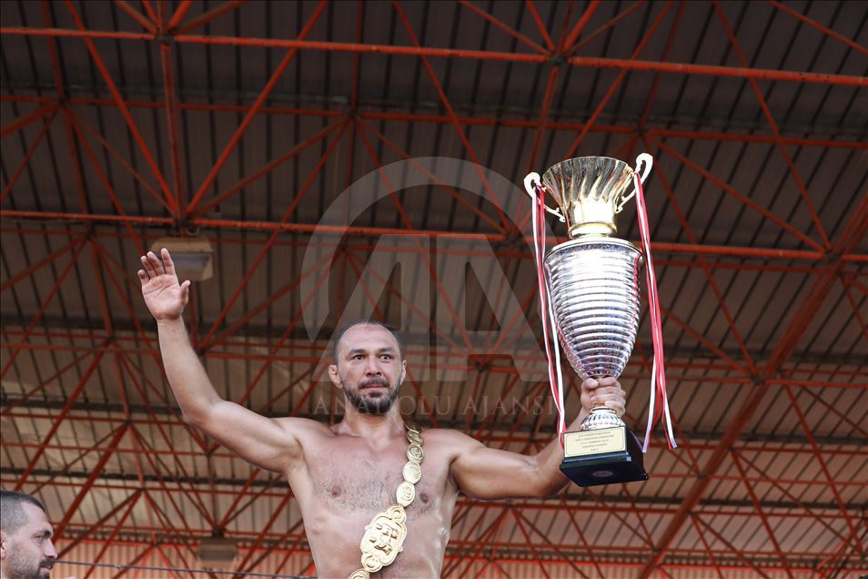 658. Tarihi Kırkpınar Yağlı Güreşleri'nin başpehlivanı, rakibi Orhan Okulu'yu finalde yenen Ali Gürbüz oldu. Başpehlivan Gürbüz, kupası ile poz verdi. ( Özgün Tiran - Anadolu Ajansı )Özgün Tiran