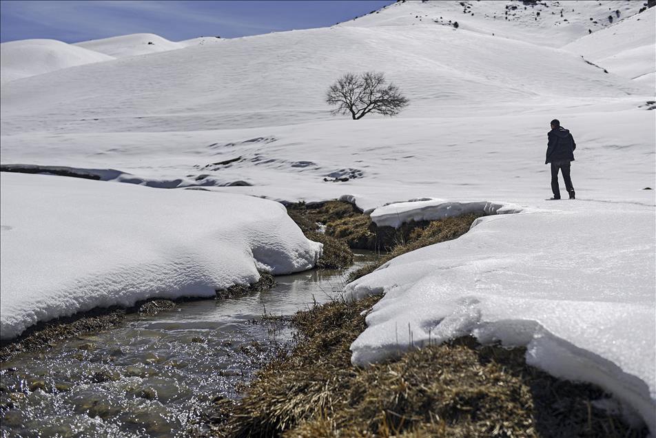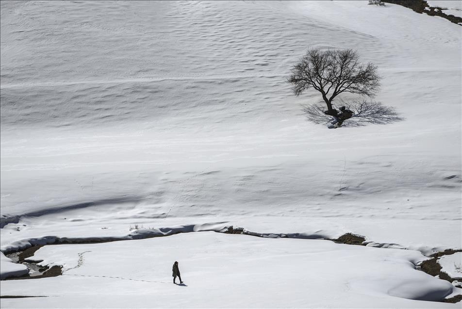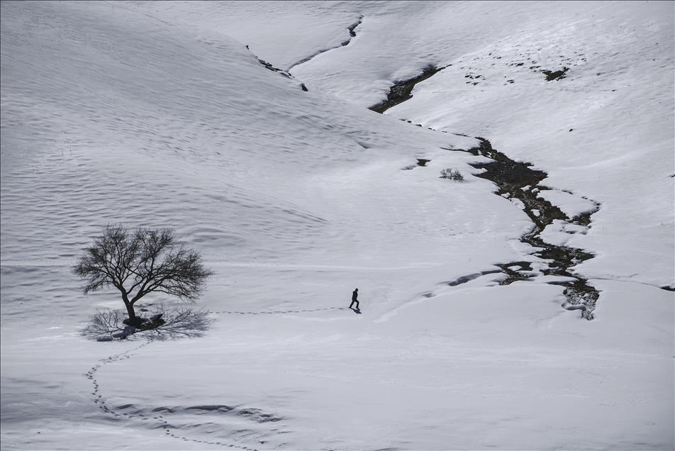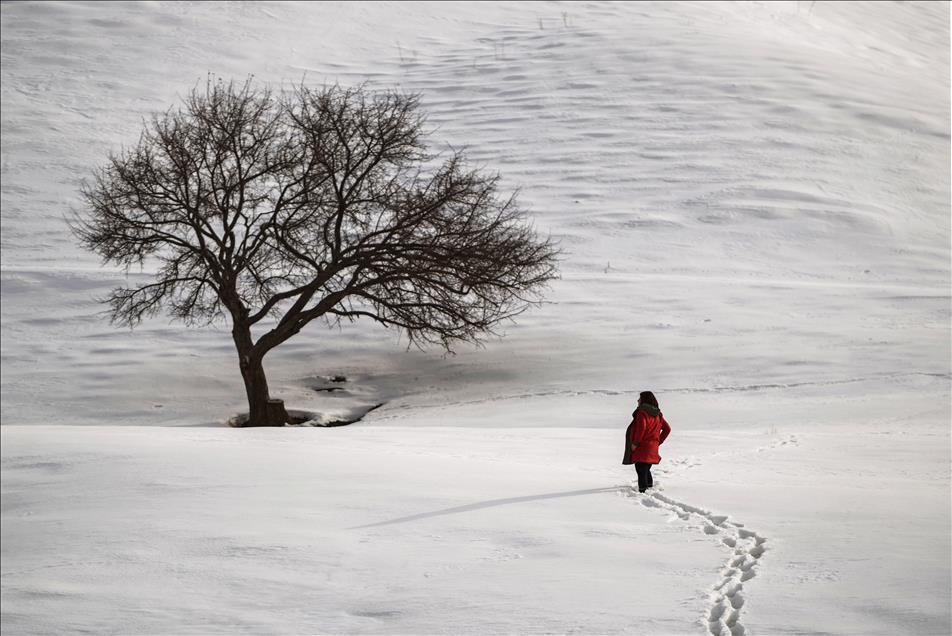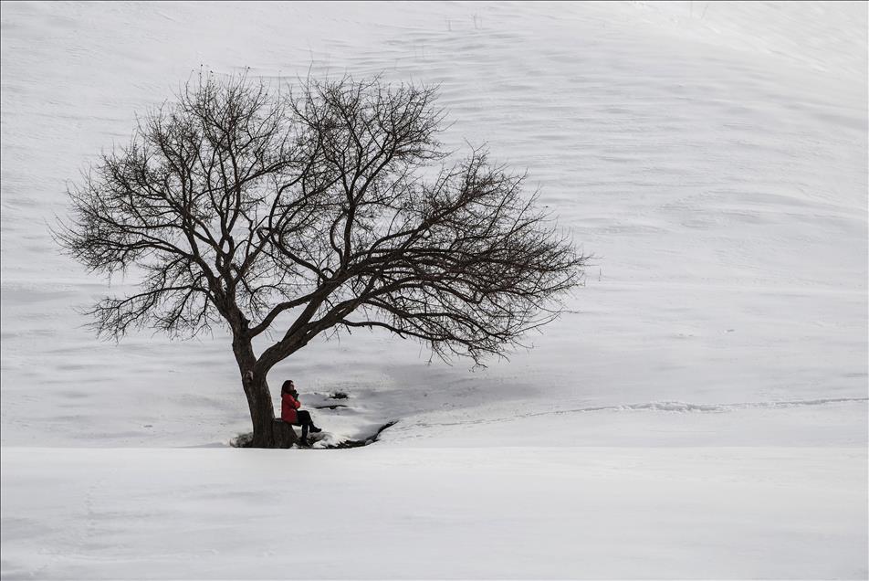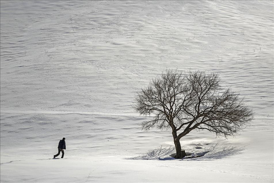 Kış mevsiminin çetin geçtiği illerin başında gelen Van'da, beyaz örtü üstünde kalan yalnız ağaçlar görüntüleriyle insana huzur veriyor. (Özkan Bilgin - Anadolu Ajansı)Özkan Bilgin