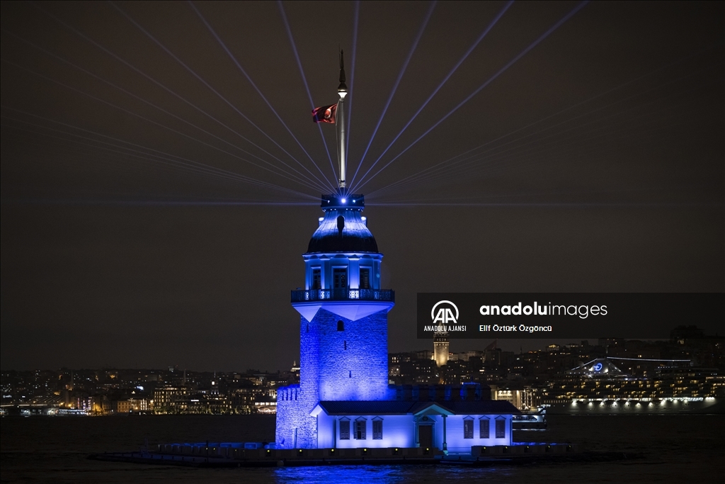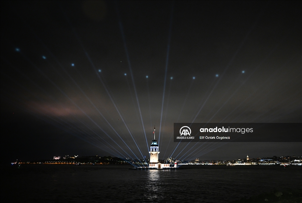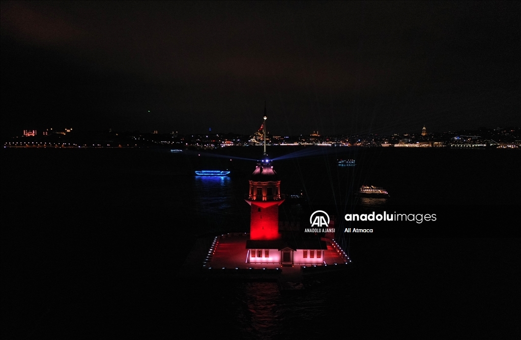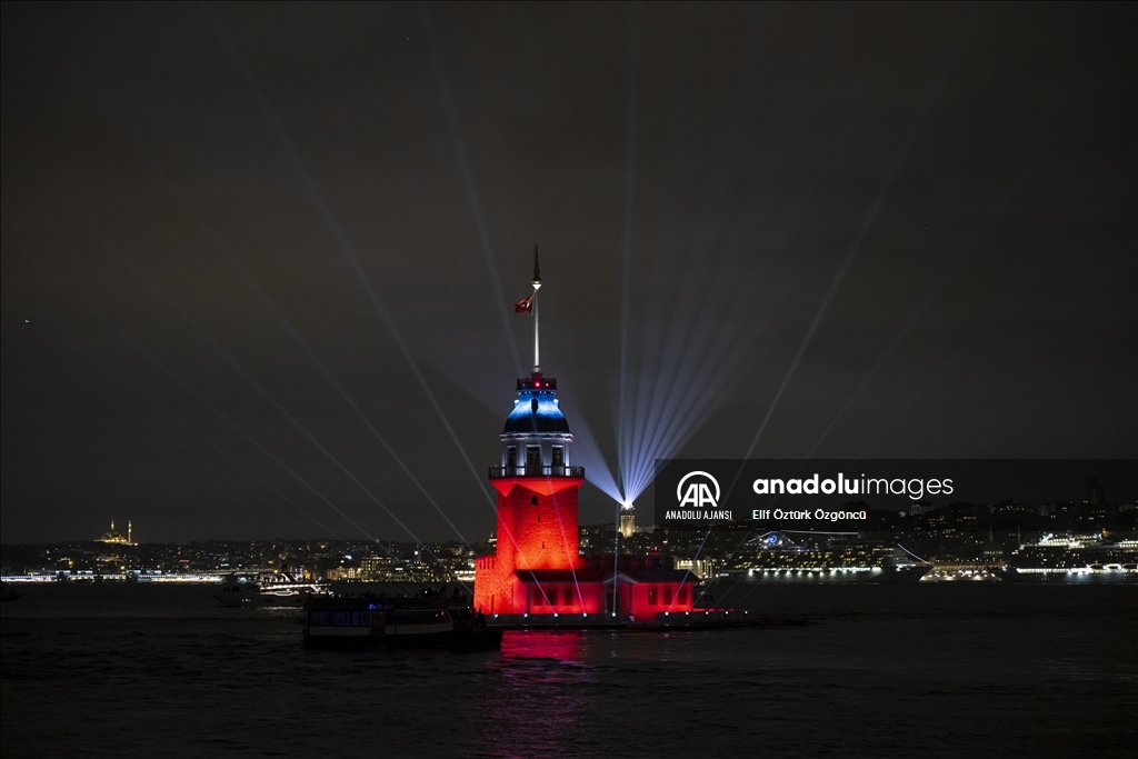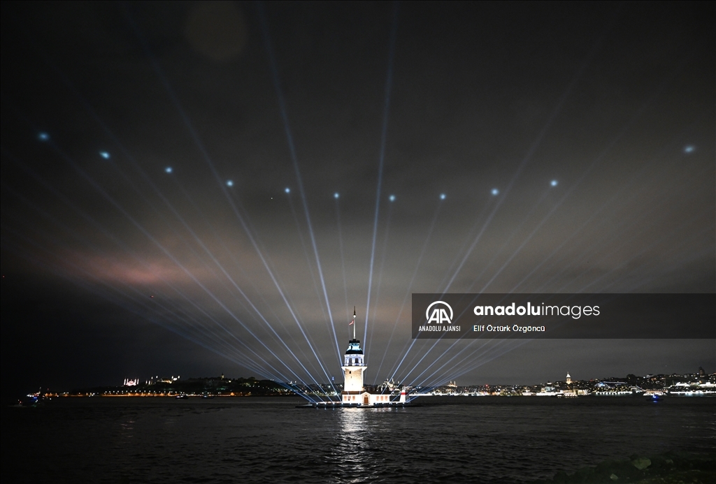 ISTANBUL, TURKIYE - MAY 11: A view of laser lighting display over Istanbul's Maiden's Tower after 2-year restoration in Istanbul, Turkiye on May 11, 2023. ( Elif Öztürk Özgöncü - Anadolu Agency )Elif Öztürk Özgöncü