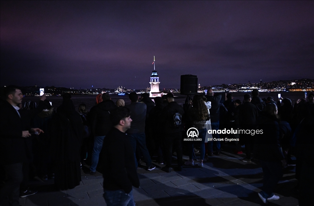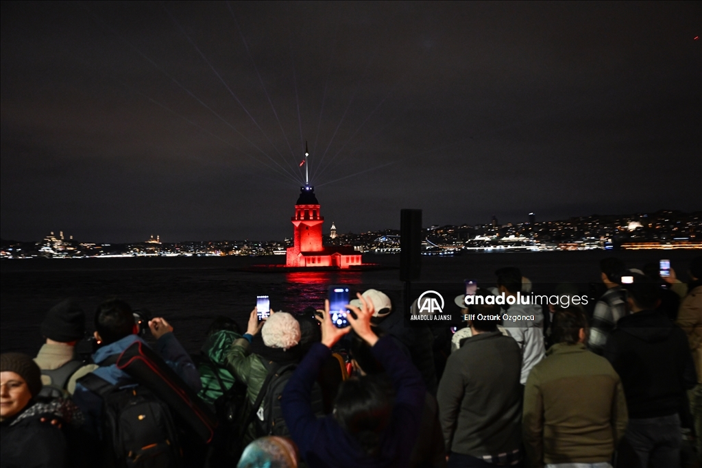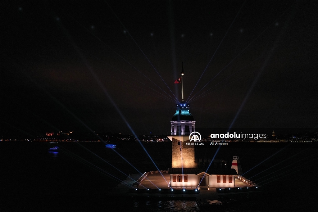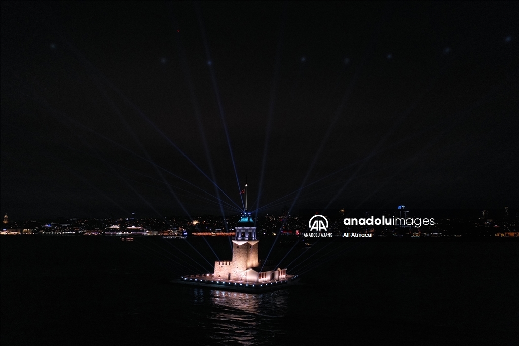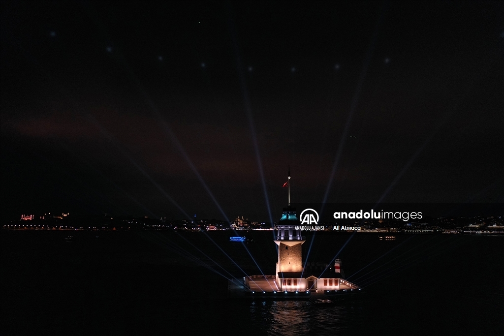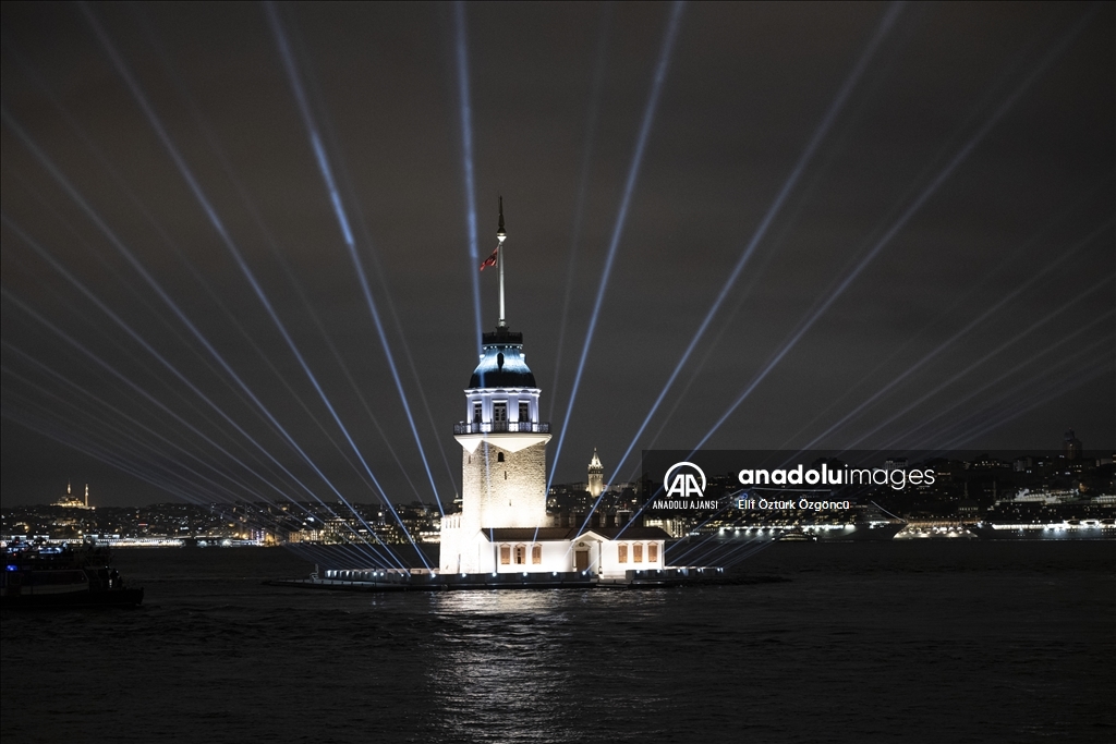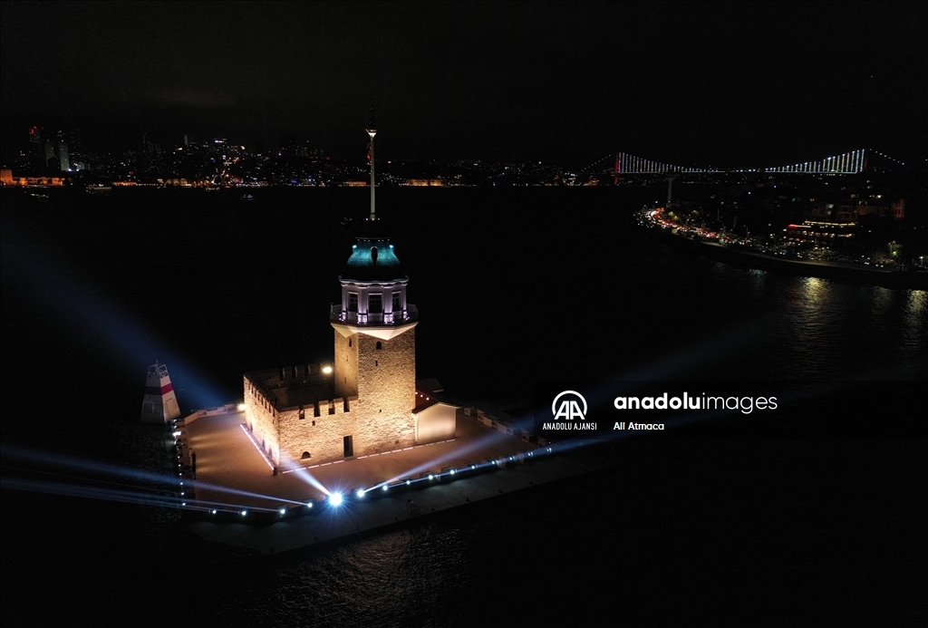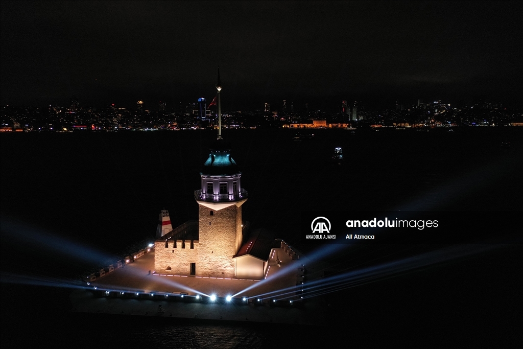 İstanbul'un simge yapılarından restorasyonu tamamlanan Kız Kulesi, bu akşam 21.00'den itibaren yapılan ışık ve lazer şovuyla açıldı.